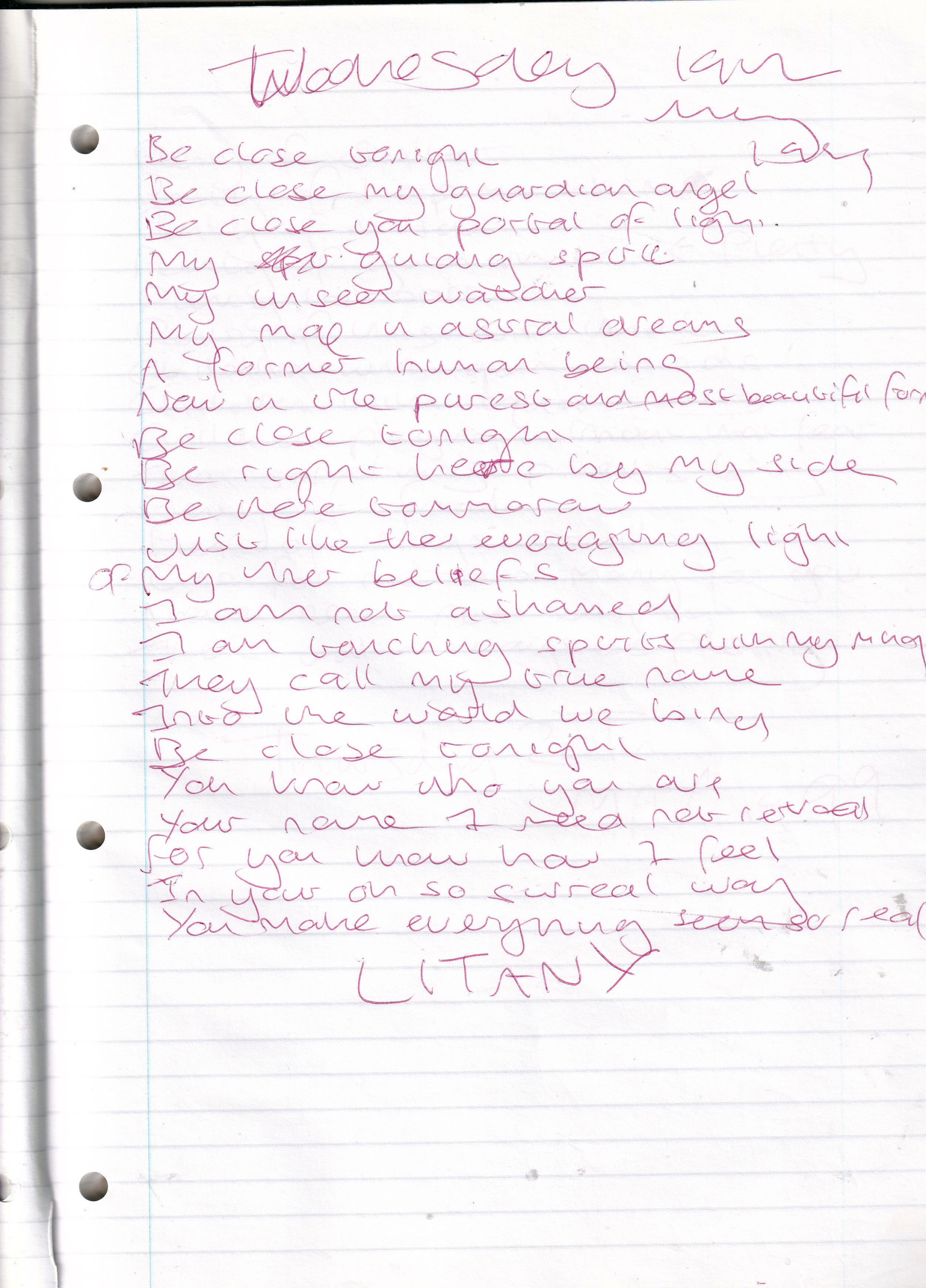 Litany – Written Wednesday 19th May 1999 (Aged 24)
