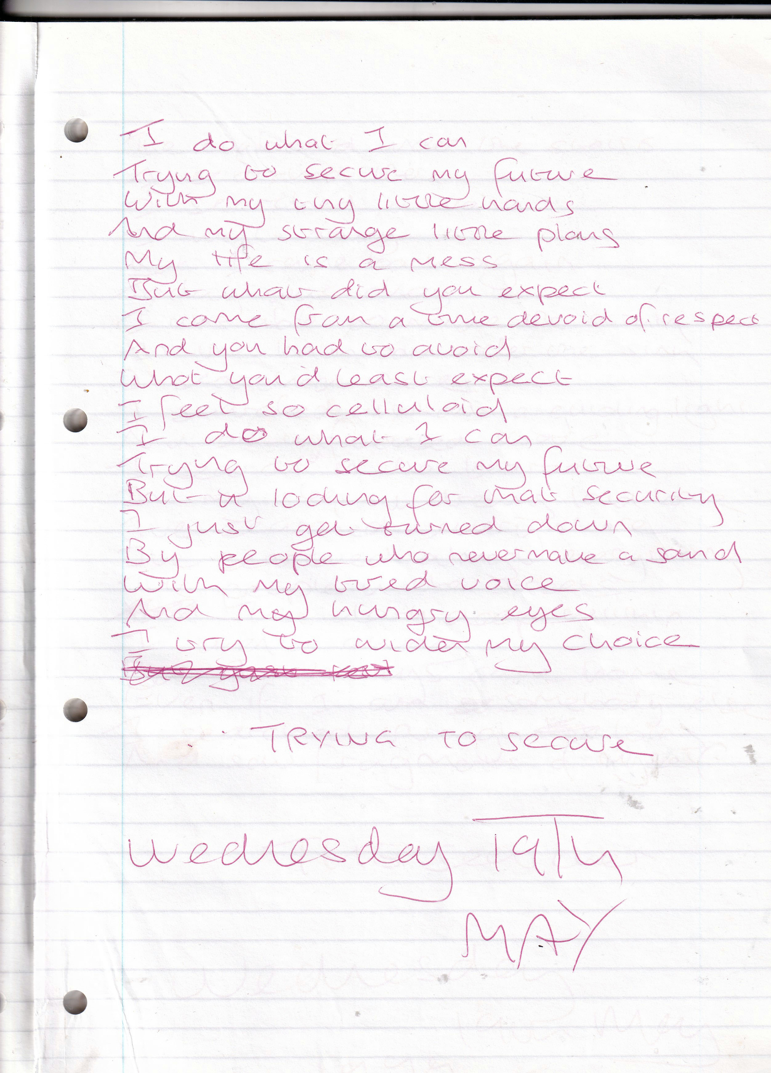 Trying to Secure – Written Wednesday 19th May 1999 (Aged 24)