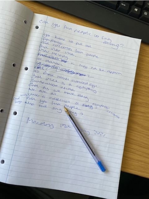 And like the Forth Road Bridge (without the paint) it does not stop, I am still writing today. I wrote two poems today in my latest pad, ‘Find Someone to Sing Along’(I have added a picture) and ‘Capital Letters’, it never ends.