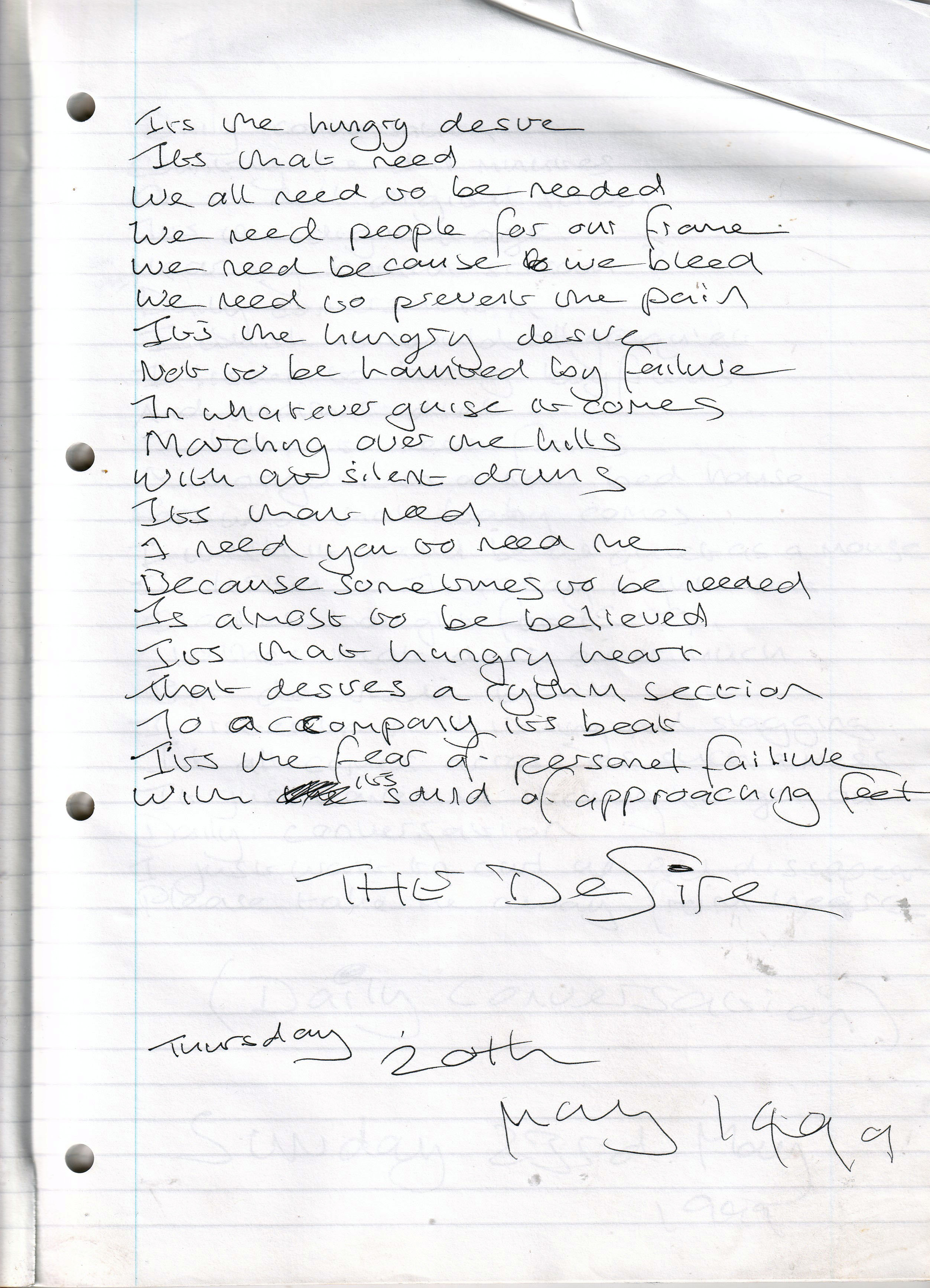 The Desire – Written Thursday 20th May 1999 (Aged 24)