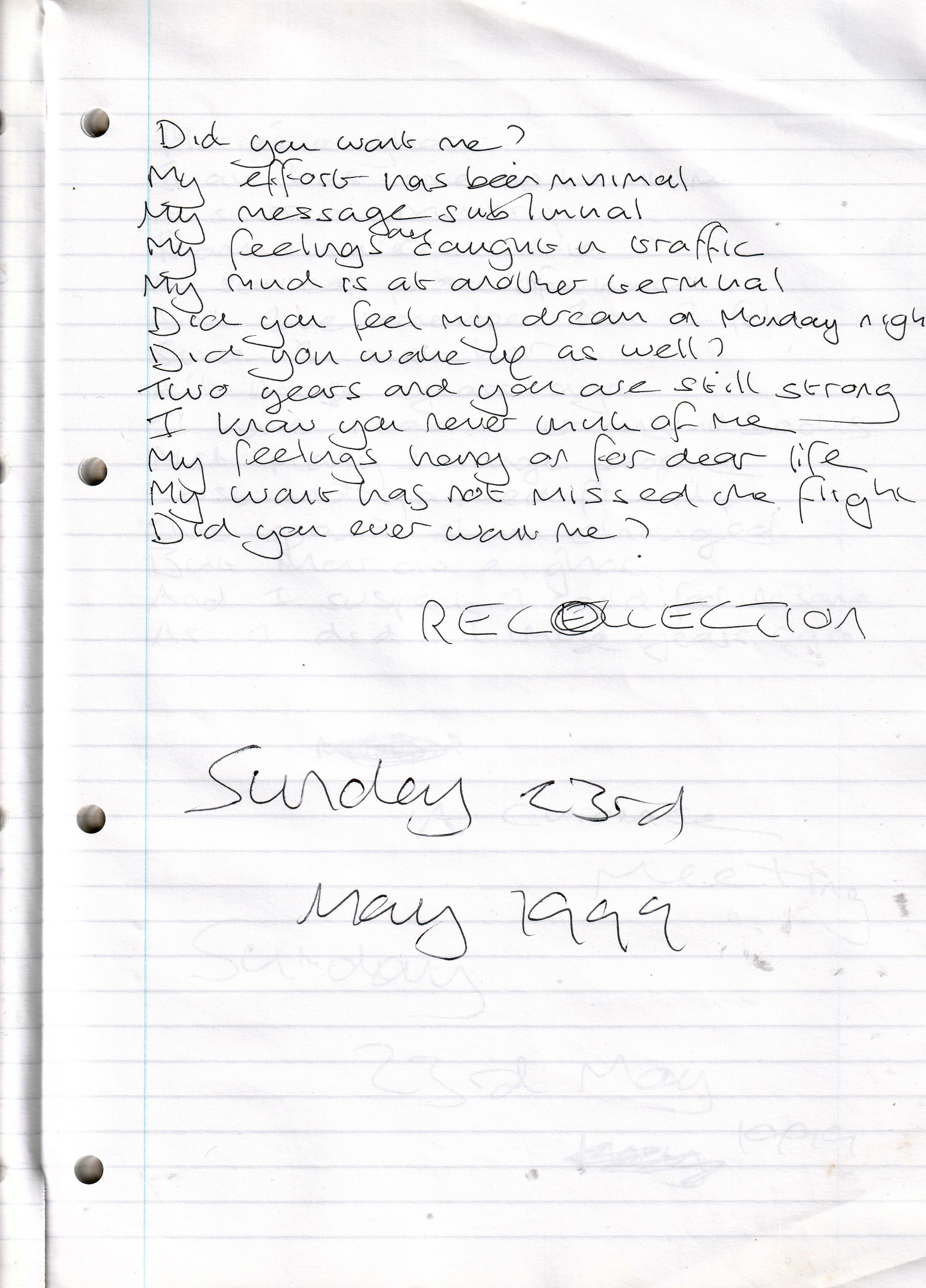 Recollection – Written Sunday 23rd May 1999 (Aged 24)