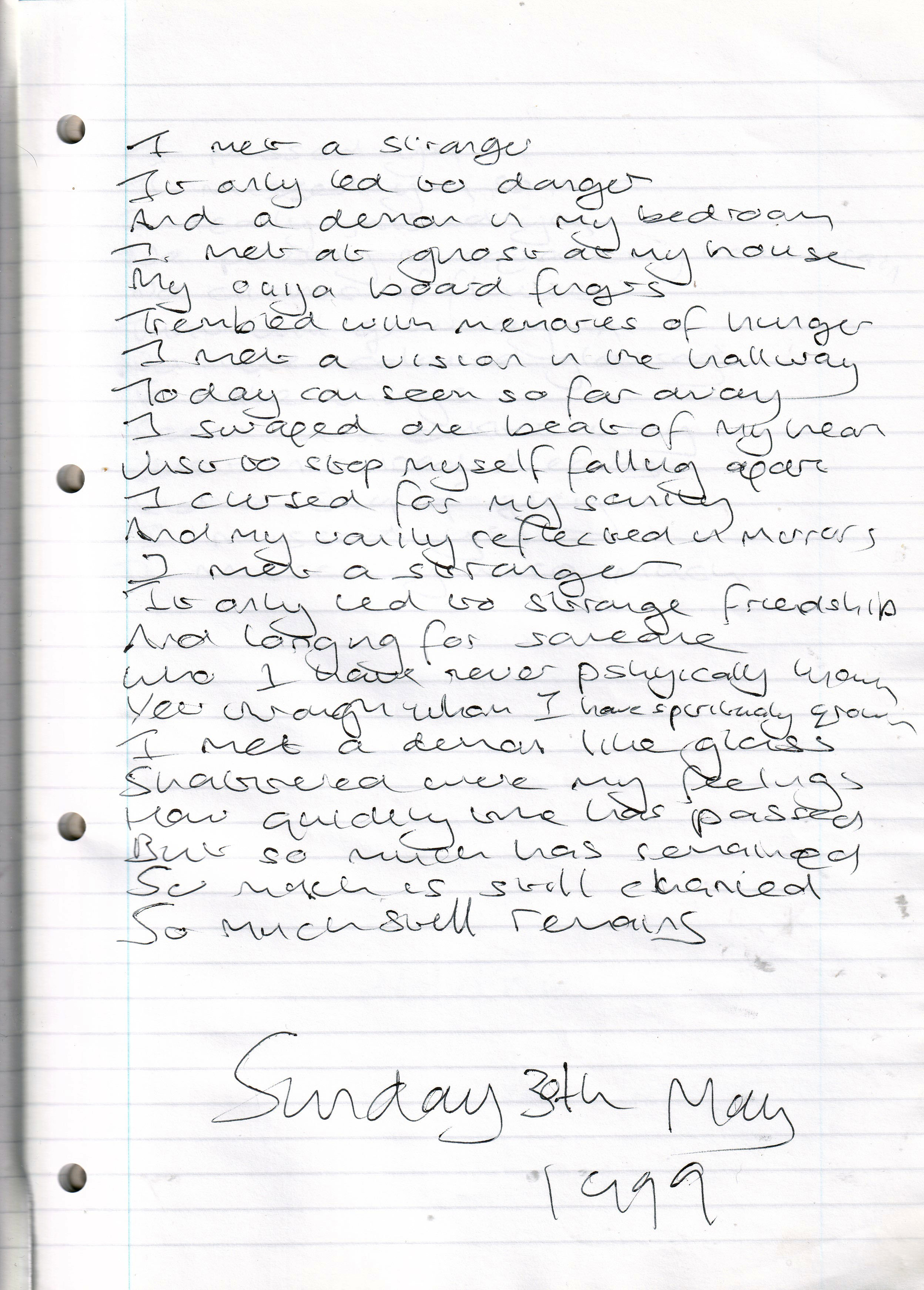 I Met a Stranger – Written Sunday 20th May 1999 (Aged 24)