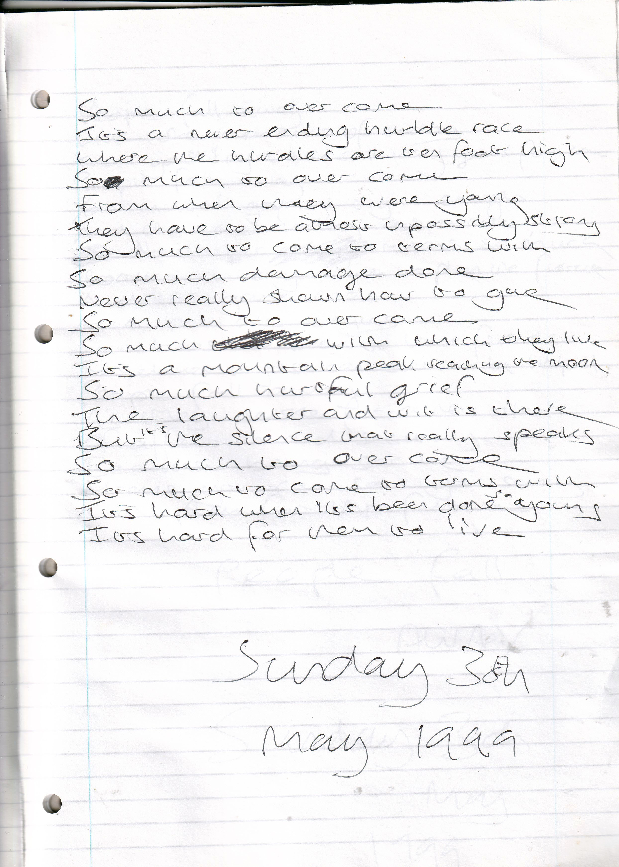 So Much to Overcome – Written Sunday 30th May 1999 (Aged 24)