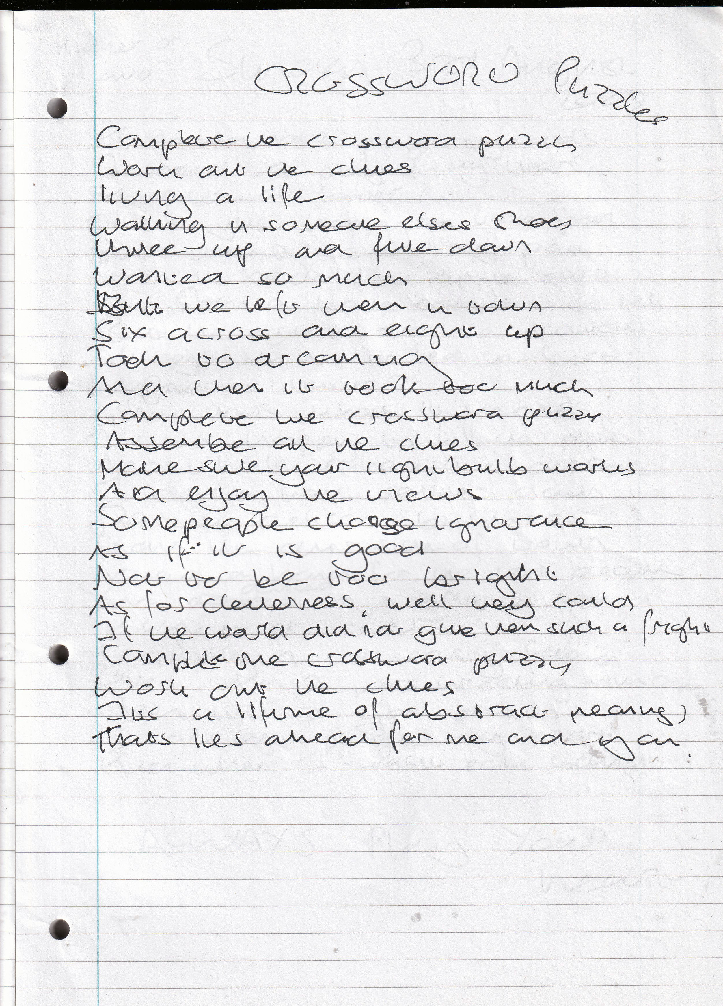 Crossword Puzzle – Written August 2008 (Aged 33)