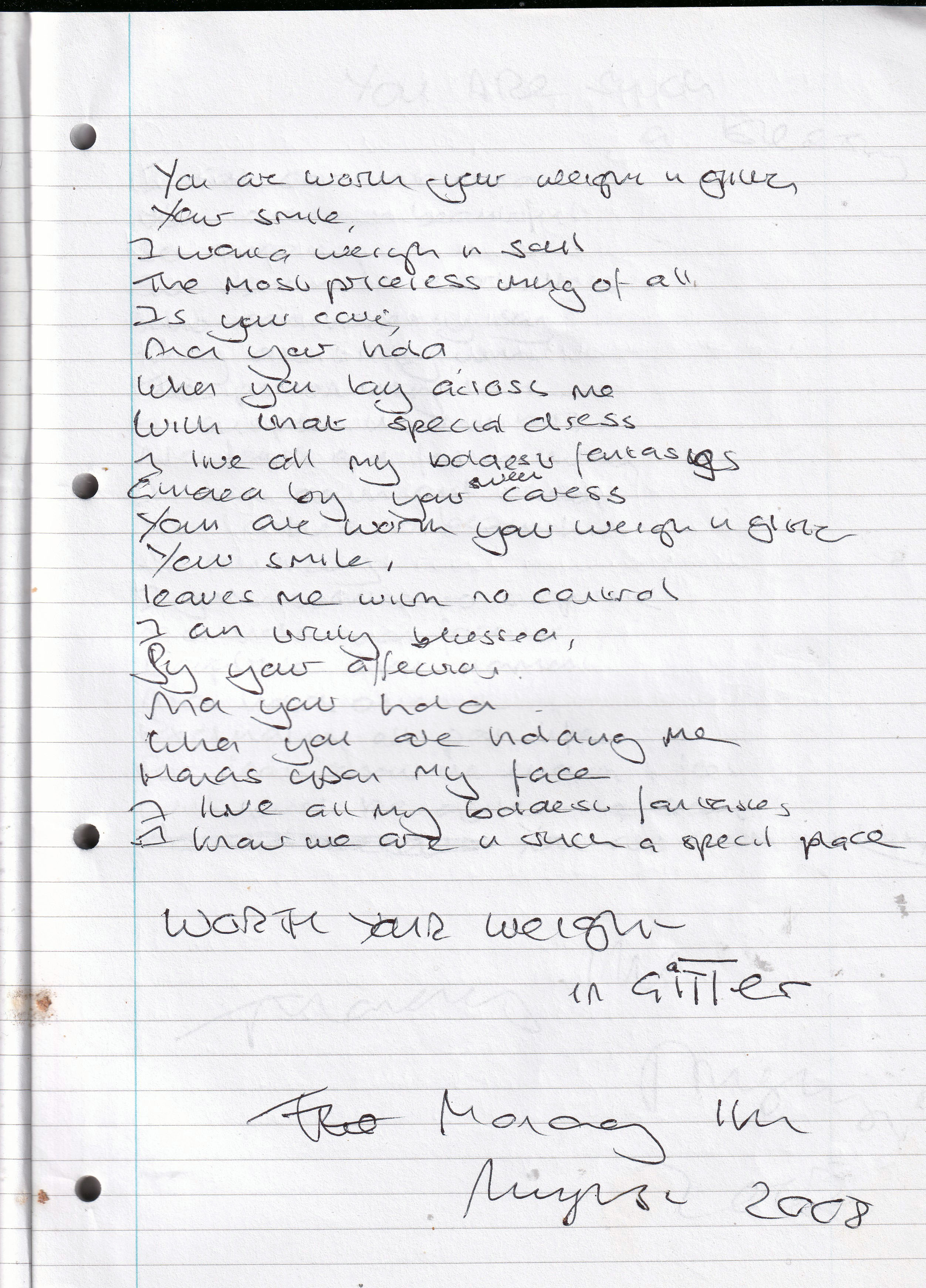 Worth Your Weight in Glitter – Written Monday 11th August 2008 (Aged 33)