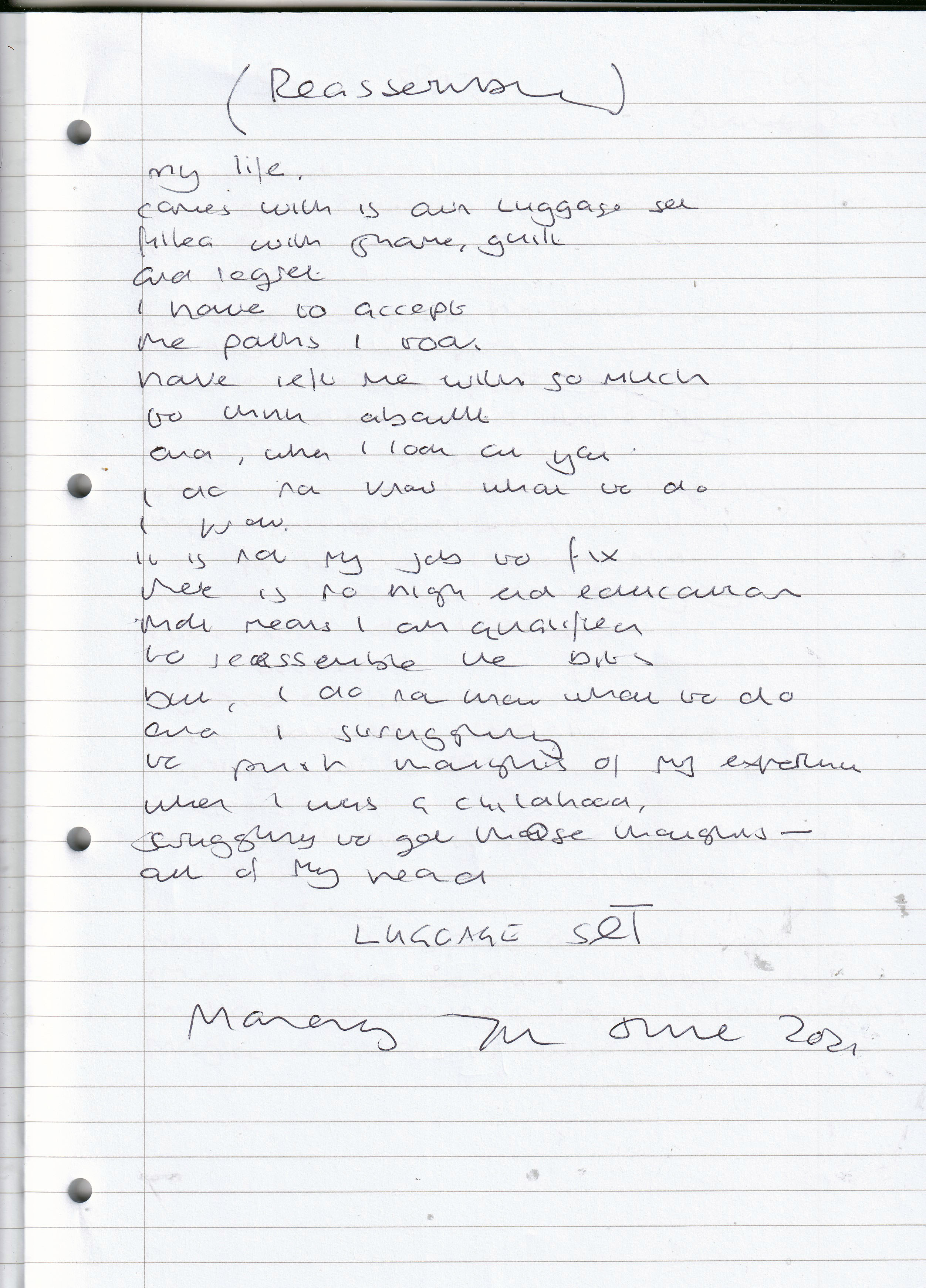 My Life Comes With Its Own Luggage Set – Written Monday 7th June 2021 (Aged 46)
