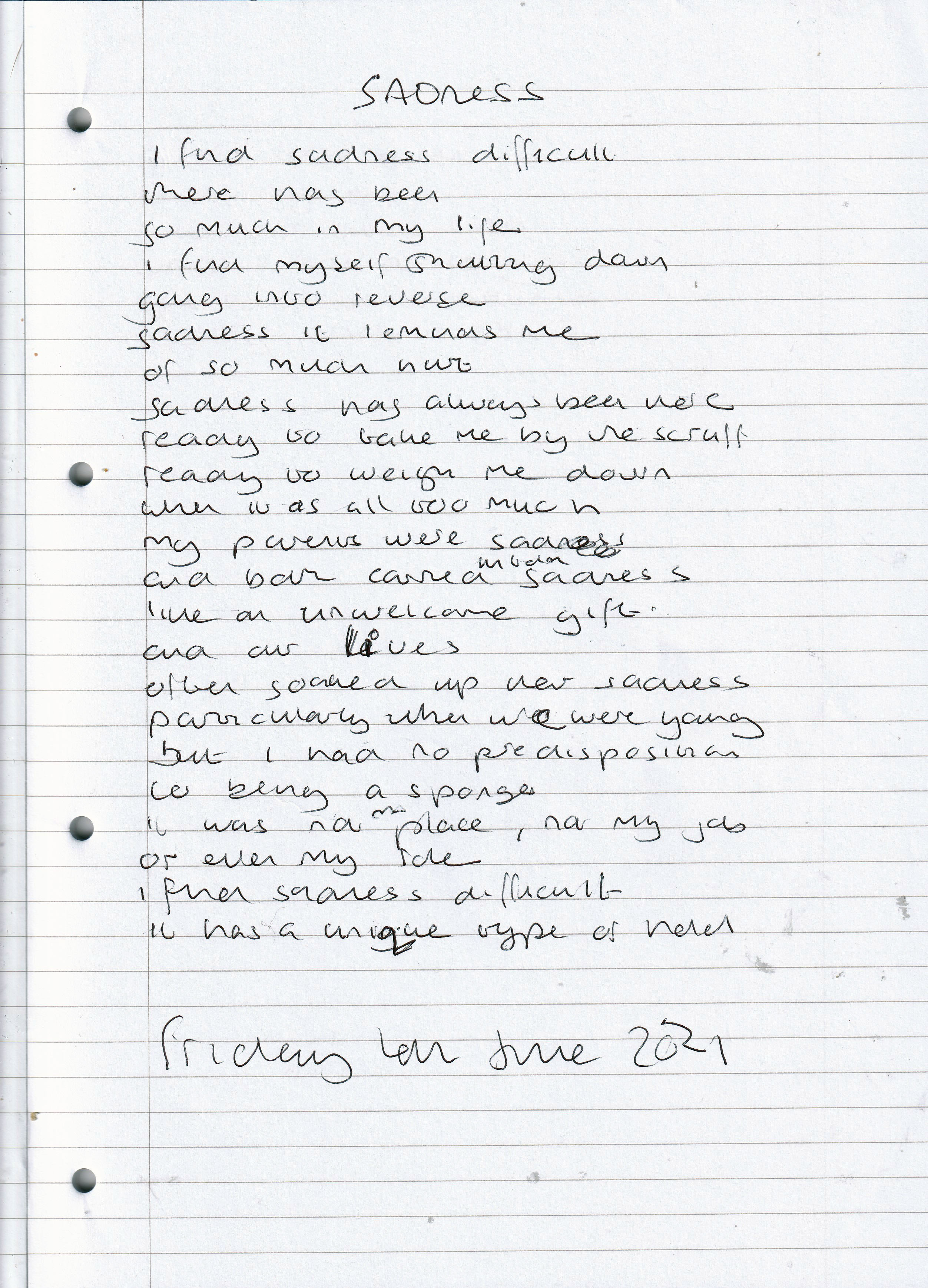Sadness – Written Friday 4th June 2021 (Aged 46)