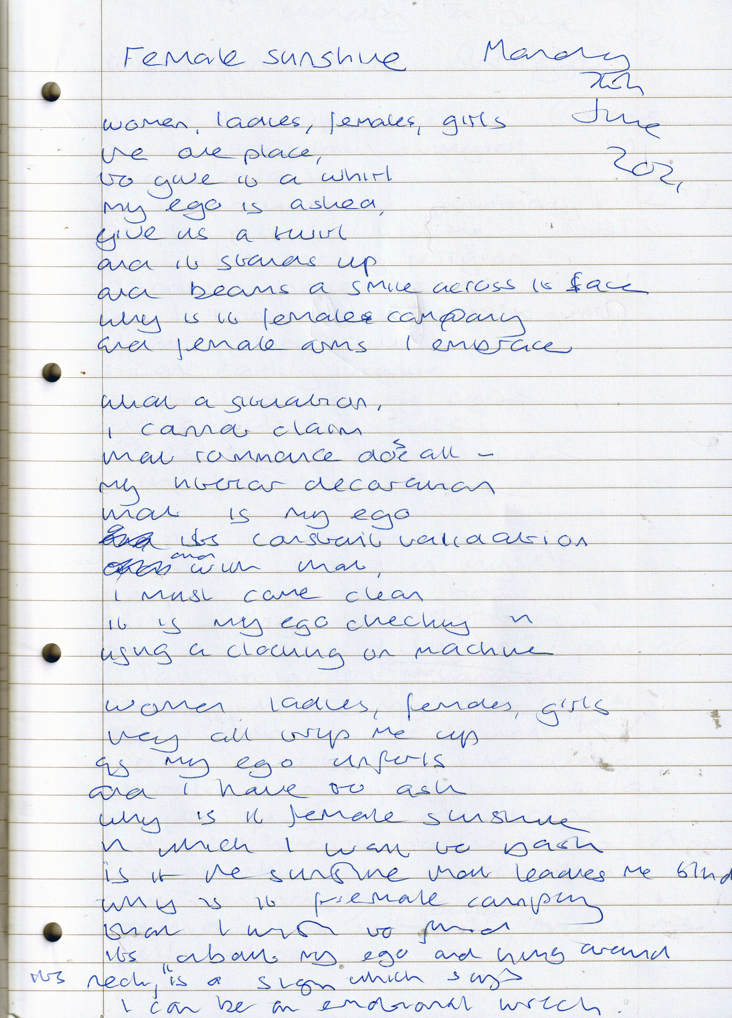 Female Sunshine – Written Monday 7th June 2021 (Aged 46)