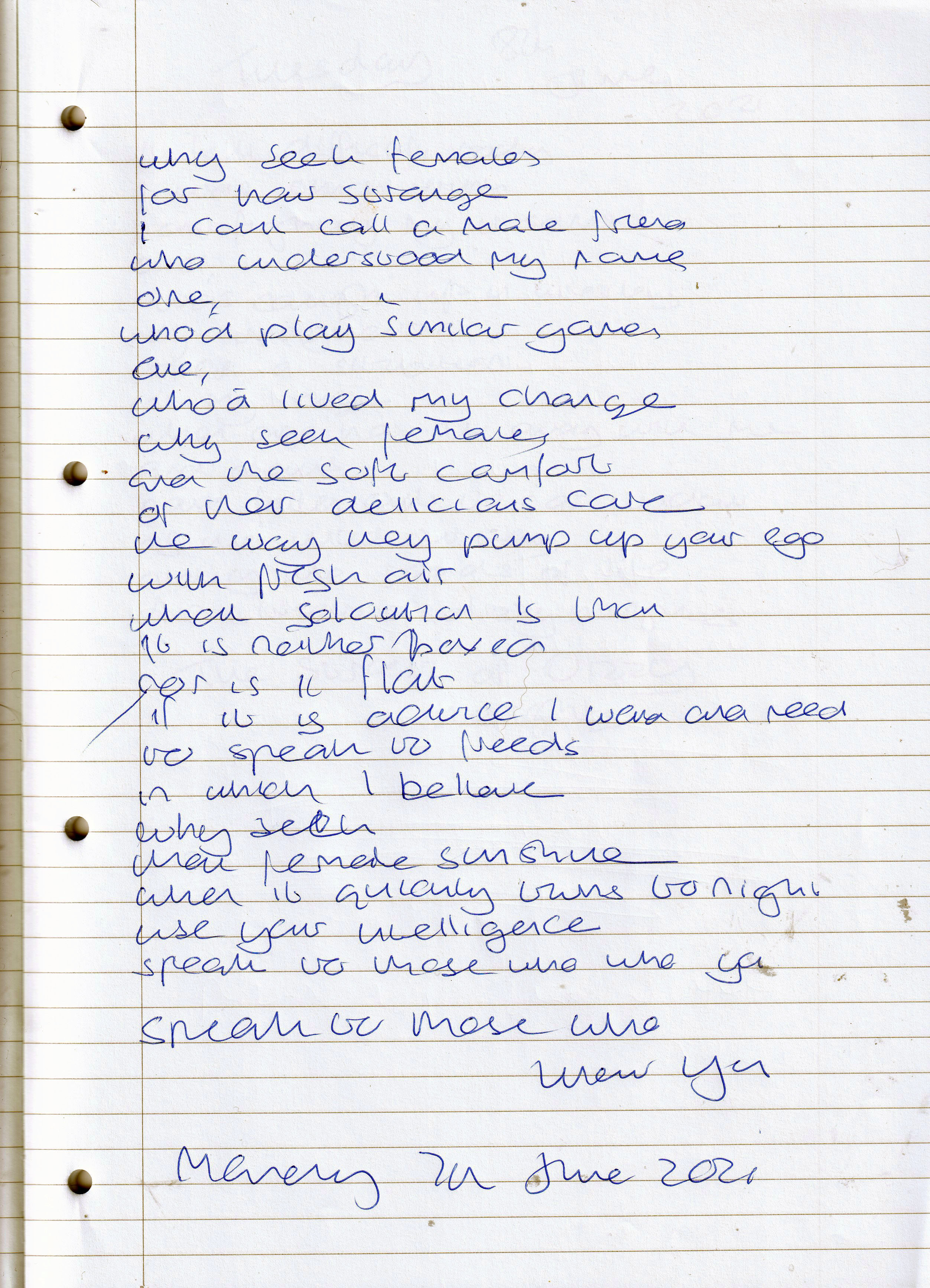 Speak to Those Who Know You – Written Monday 7th June 2021 (Aged 46)