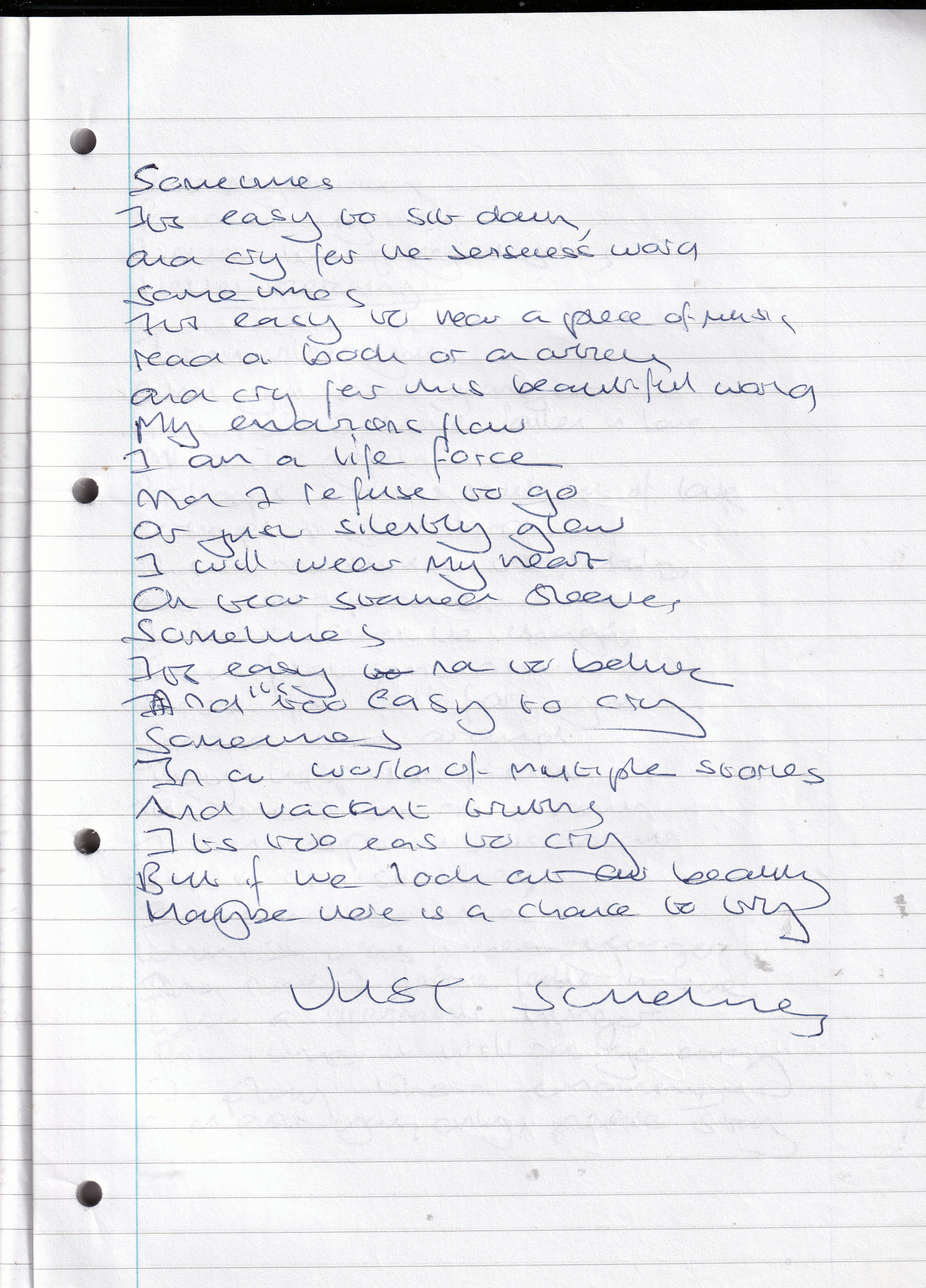 Just Sometimes – Written August 2008 (Aged 33)