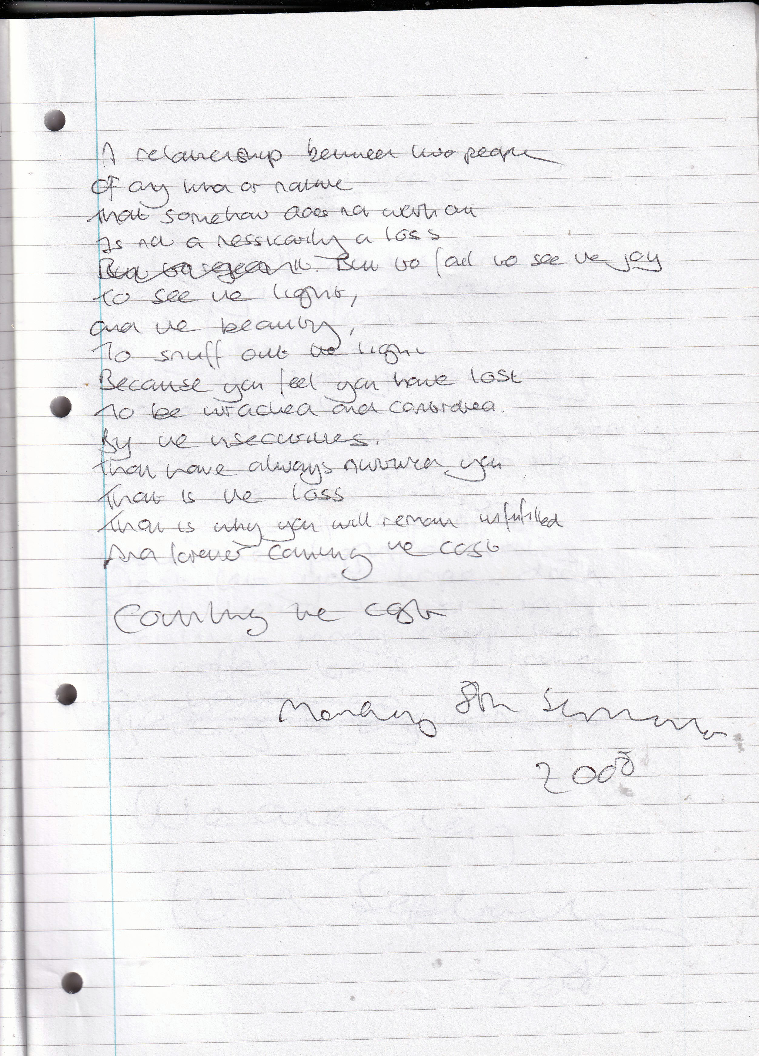 Counting the Cost – Written Monday 8th September 2008 (Aged 33)
