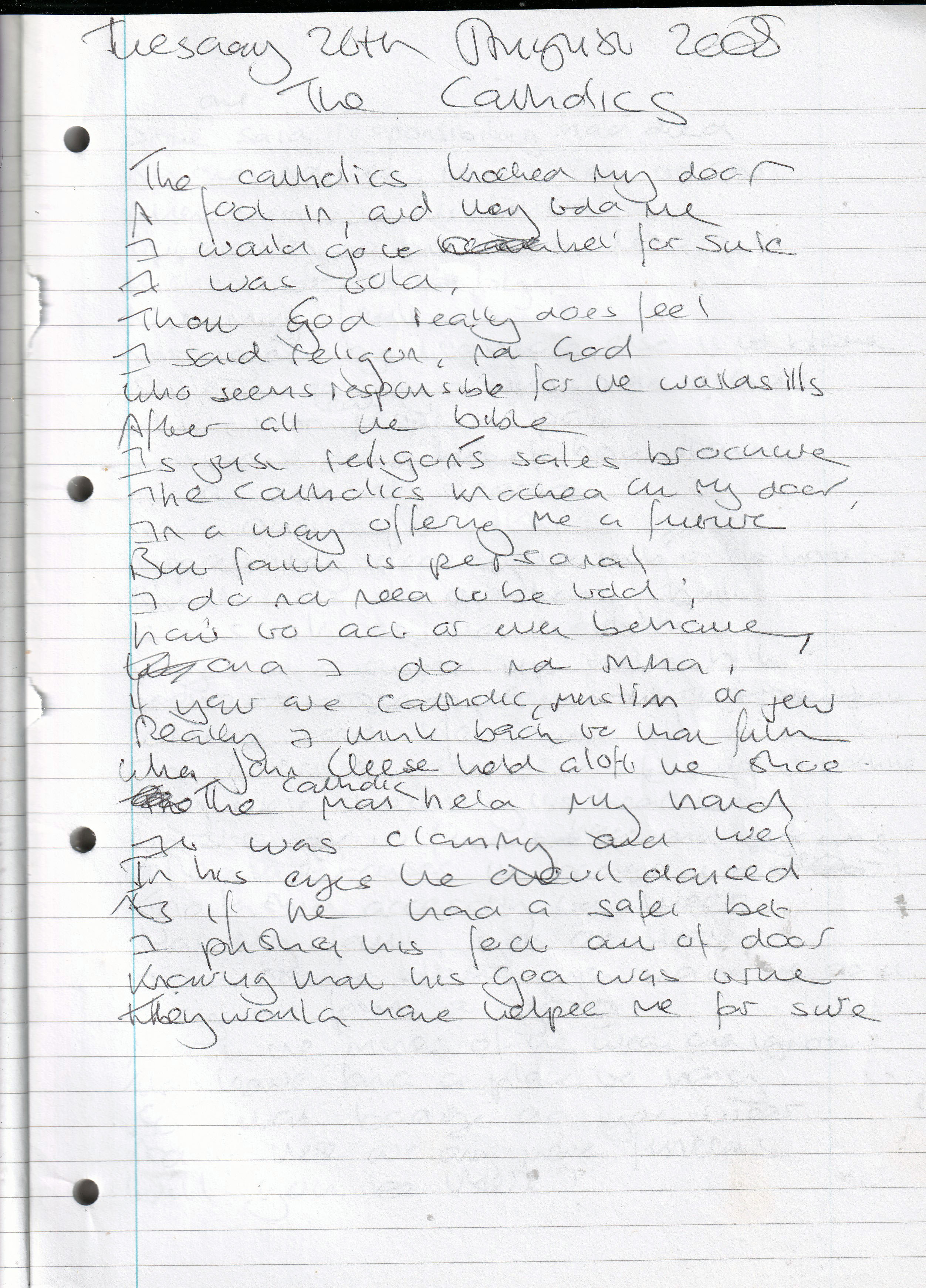 The Catholics – Written Tuesday 26th August 2008 (Aged 33)