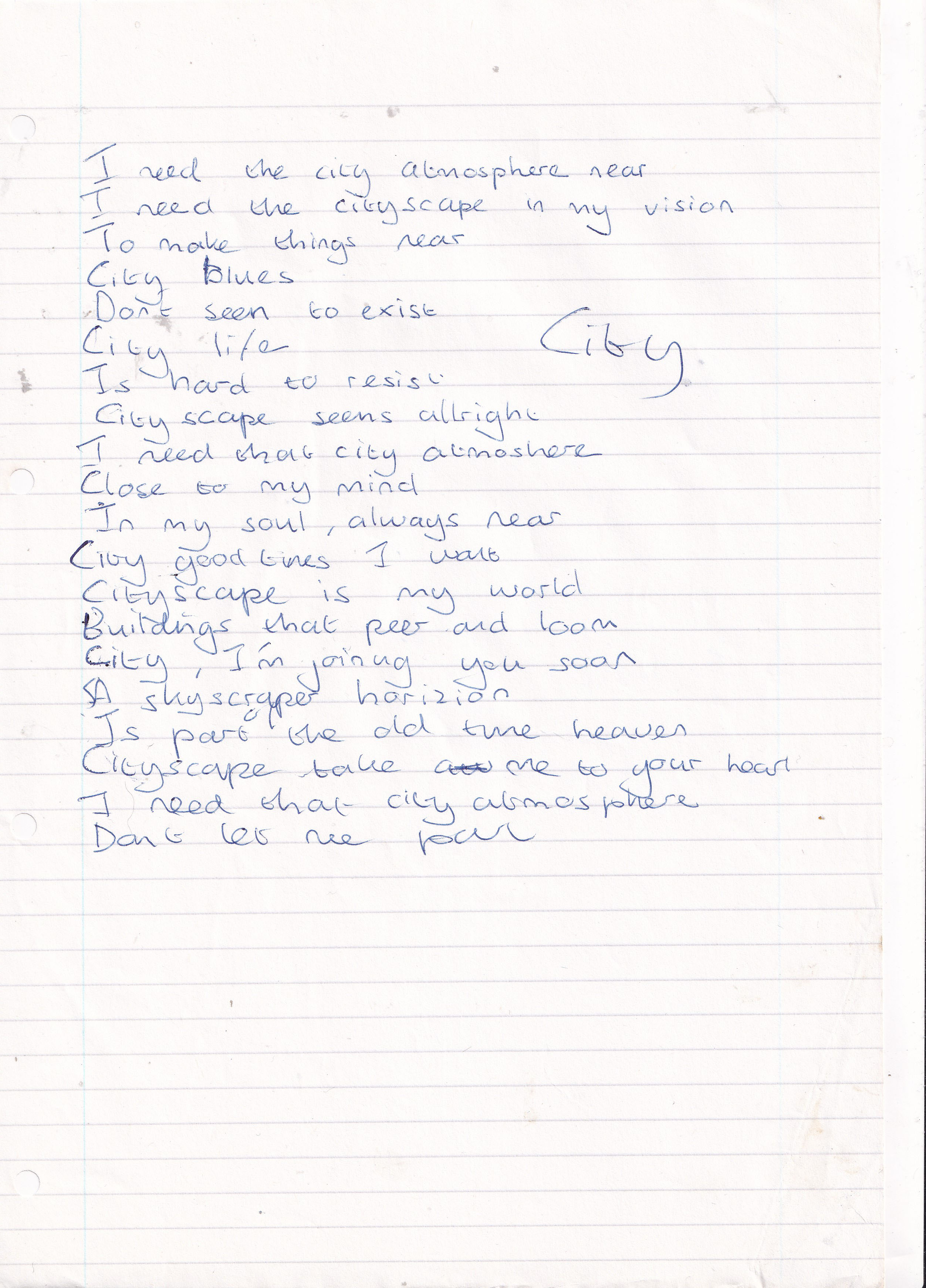 City – Written March 1994 (Aged 19)