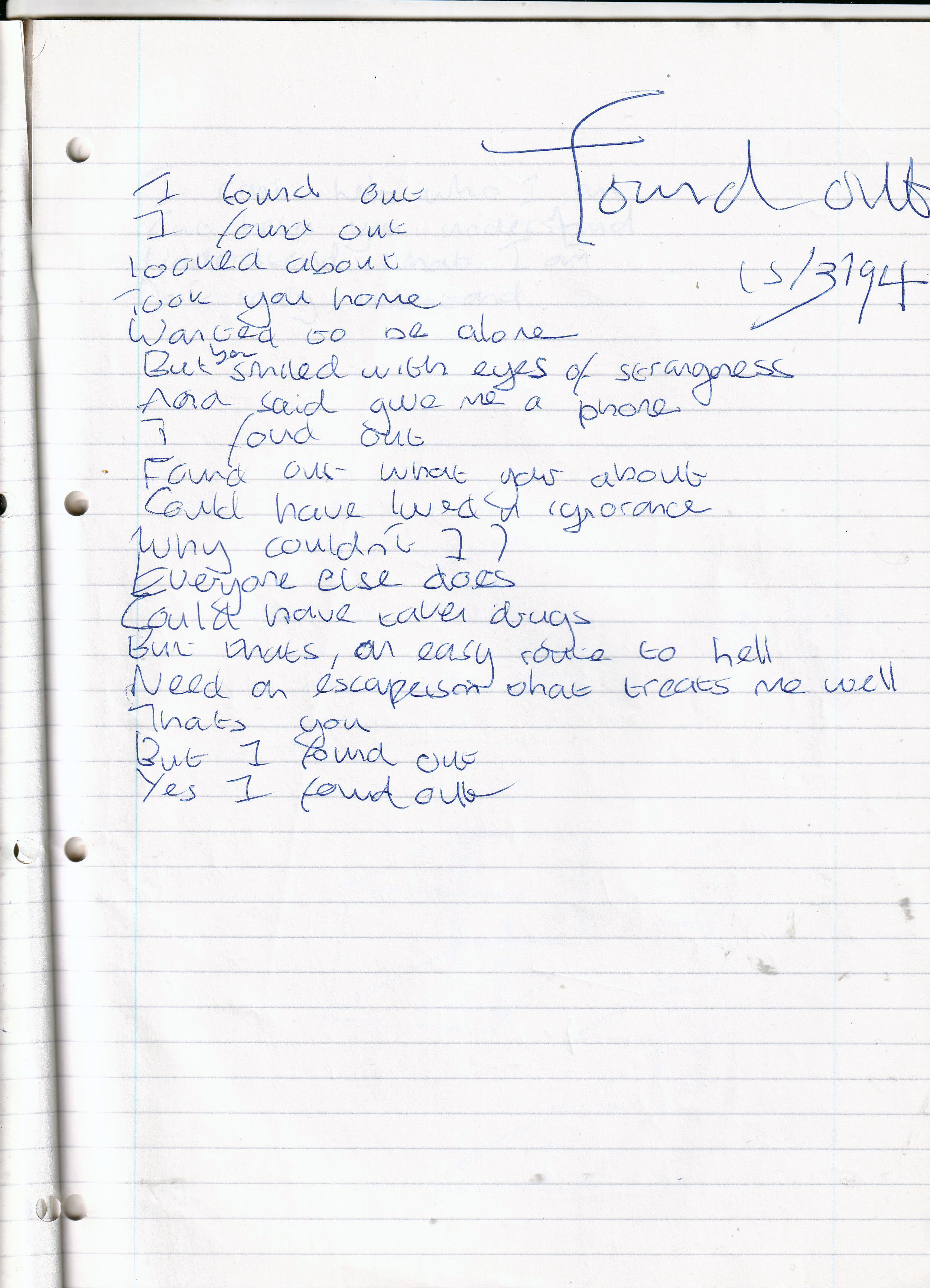 Found Out – Tuesday 15th March 1994 (Aged 19)