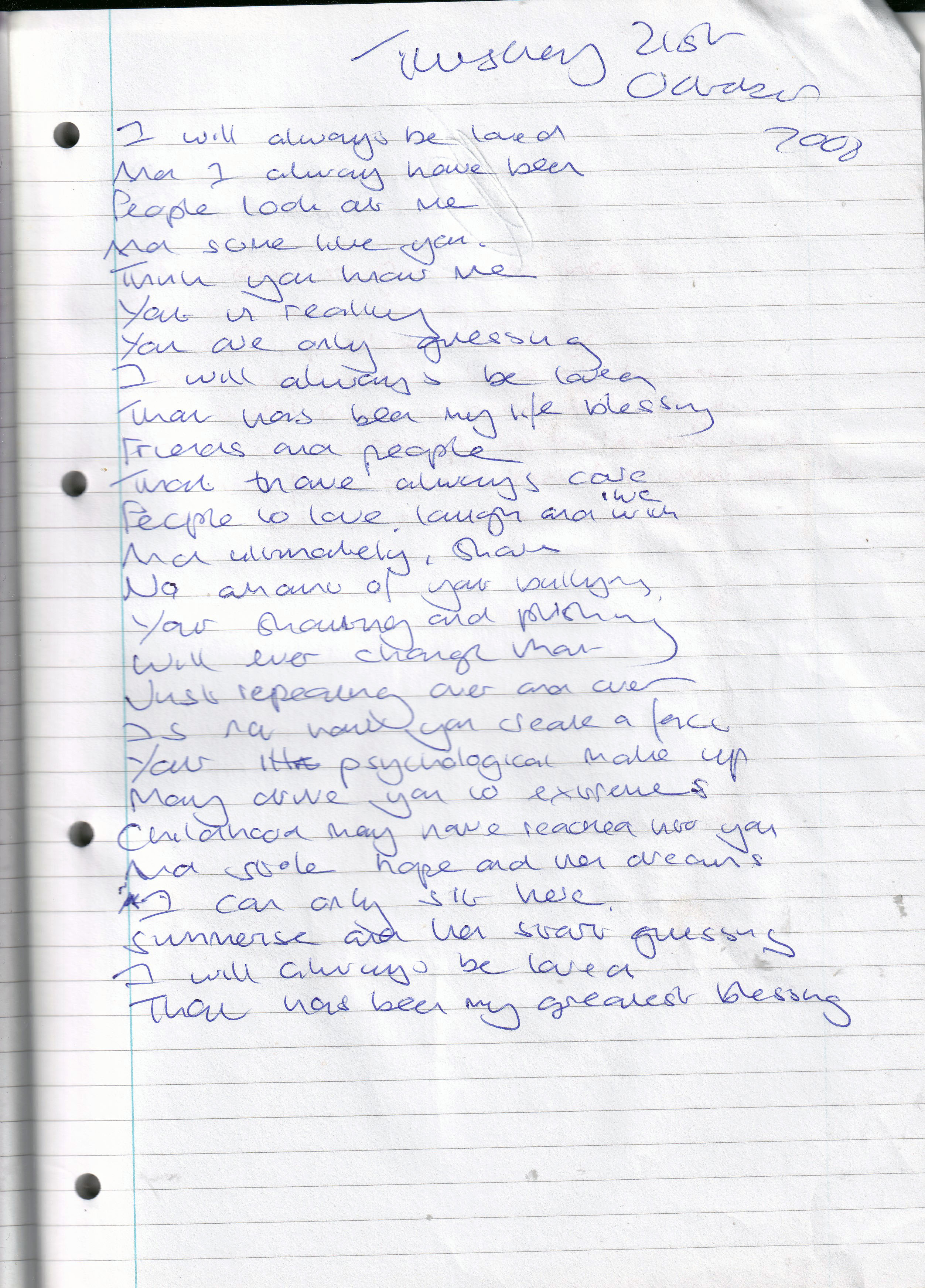 I Will Always Be Loved – Written Tuesday 21st October 2008 (Aged 33)