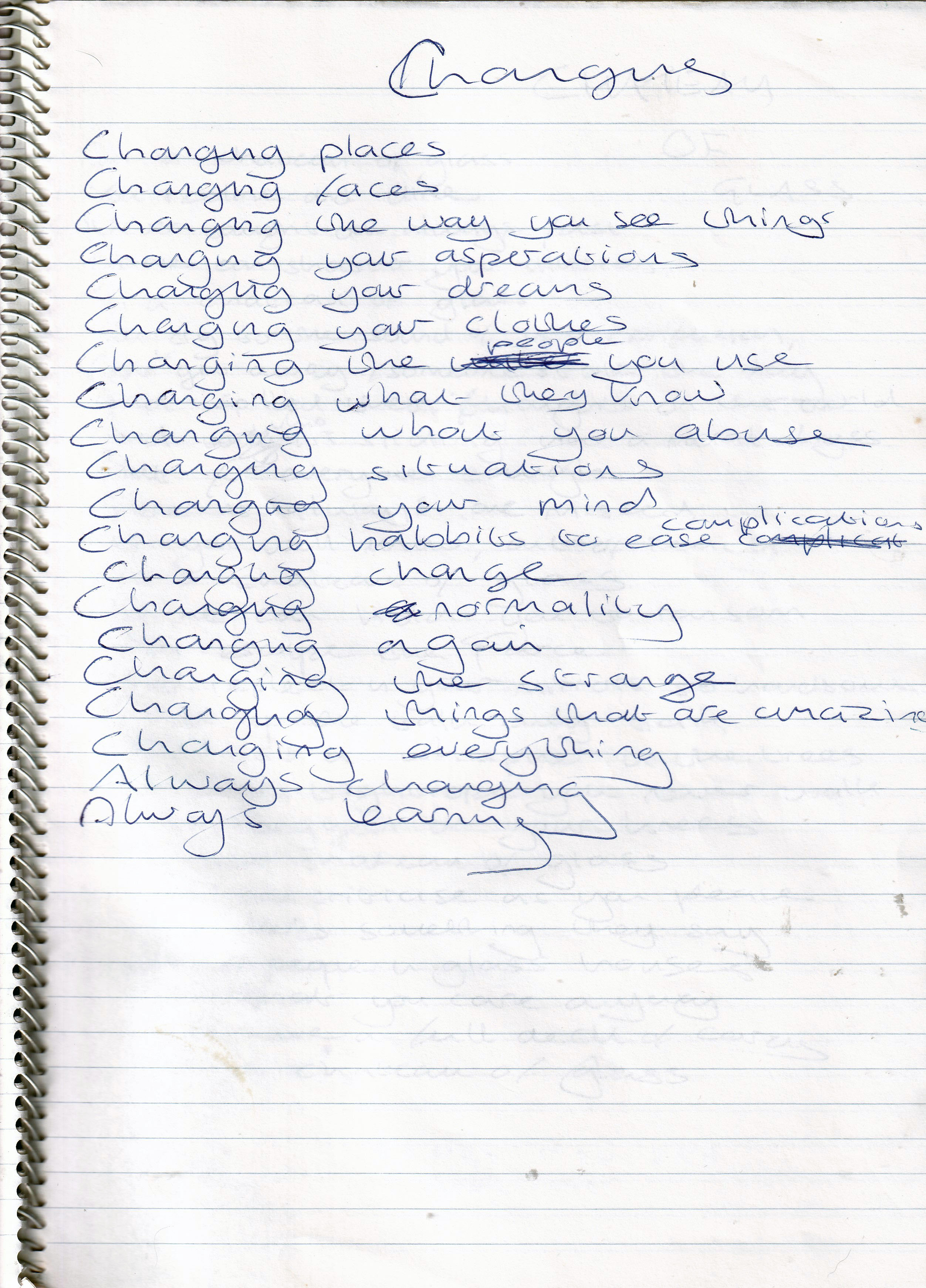 Changing – Written January 1996 (Aged 20)