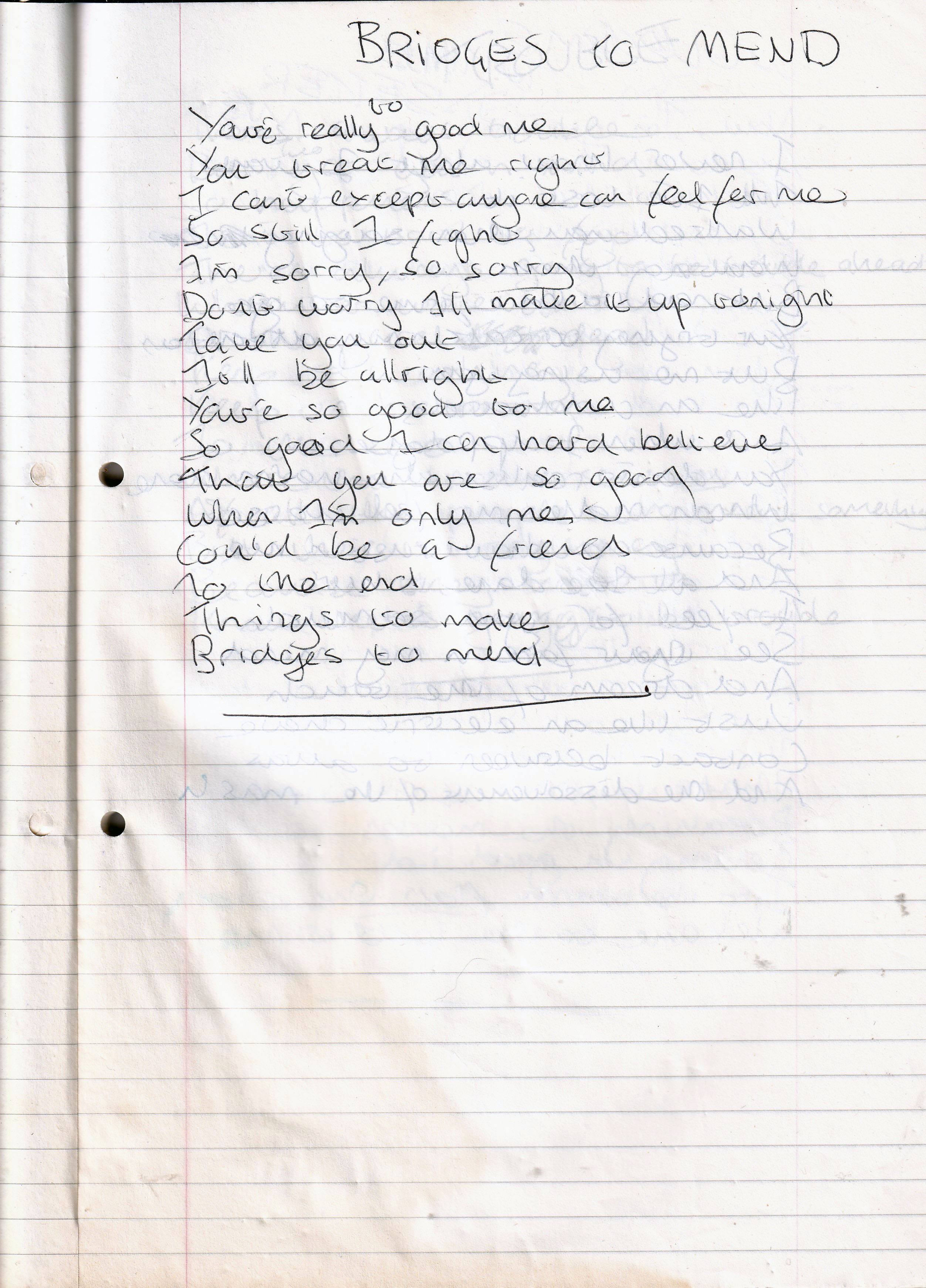 Bridges to Mend Written Approx. Late 1993 or January 1994 (Aged 18)