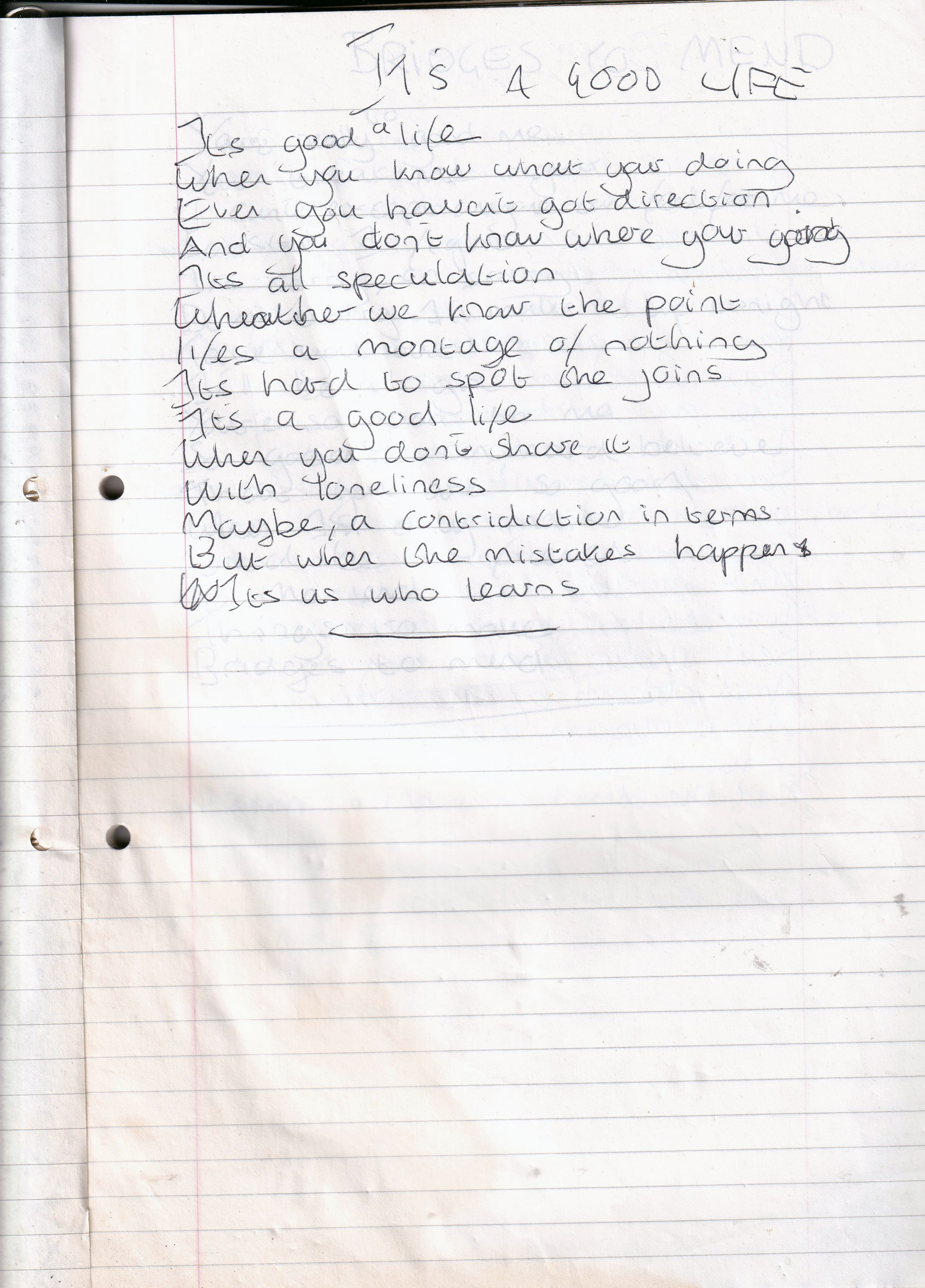 It is a Good Life – Written Approx. Late 1993 or January 1994 (Aged 18)