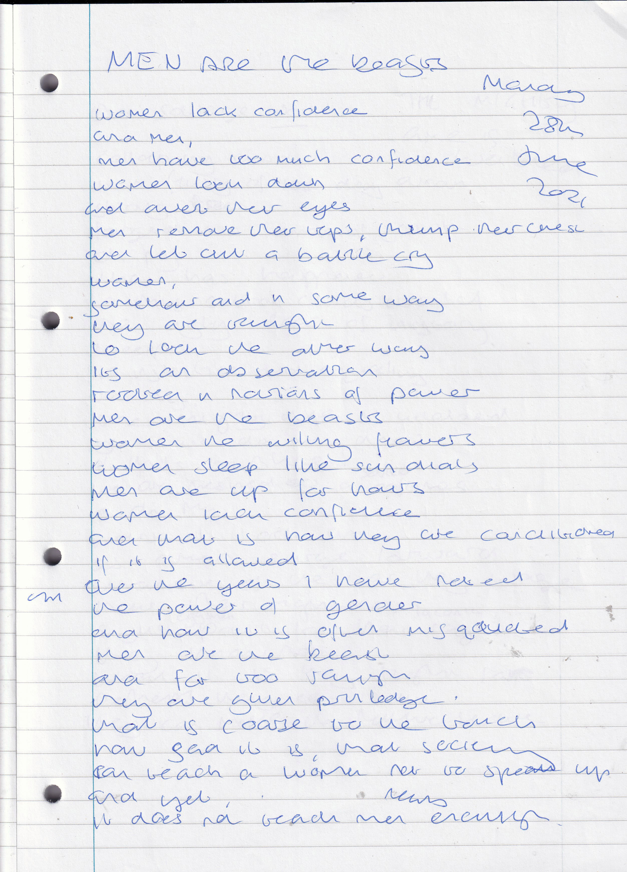 Men Are the Beasts – Written Monday 28th June 2021 (Aged 46)