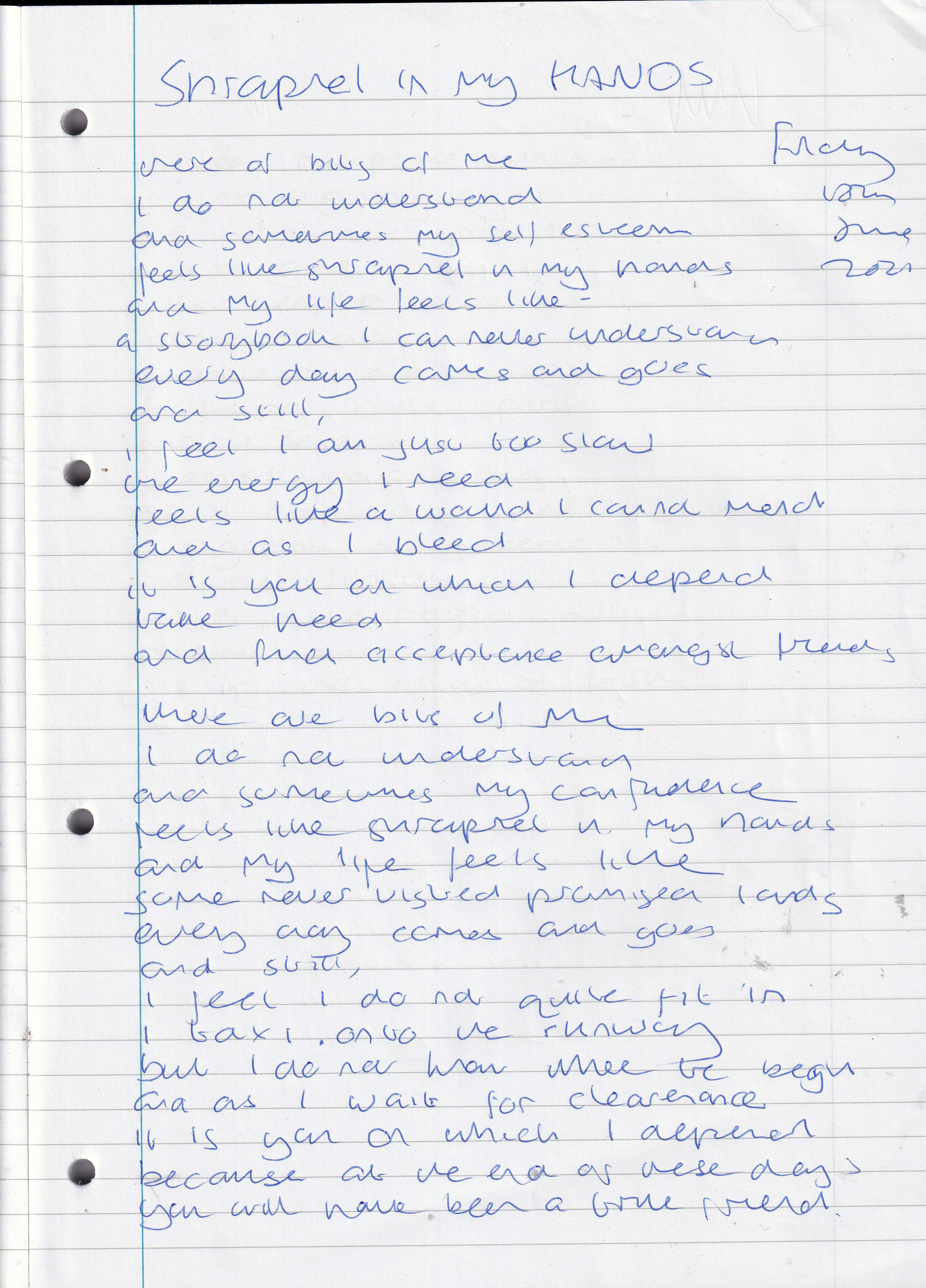 Shrapnel in My Hands – Written Friday 18th June 2021 (Aged 46)