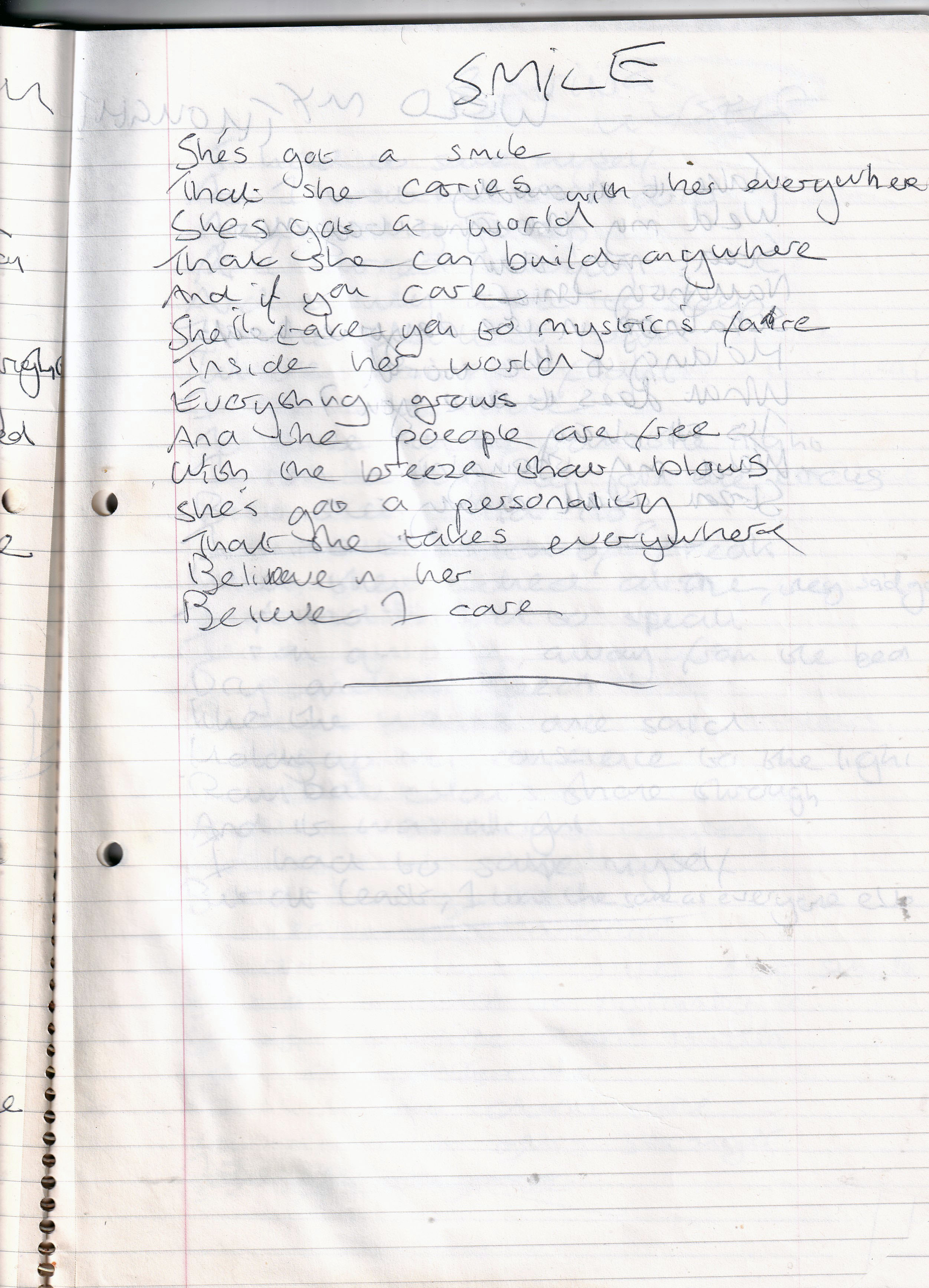 Smile – Written Approx. Late 1993 or January 1994 (Aged 18)