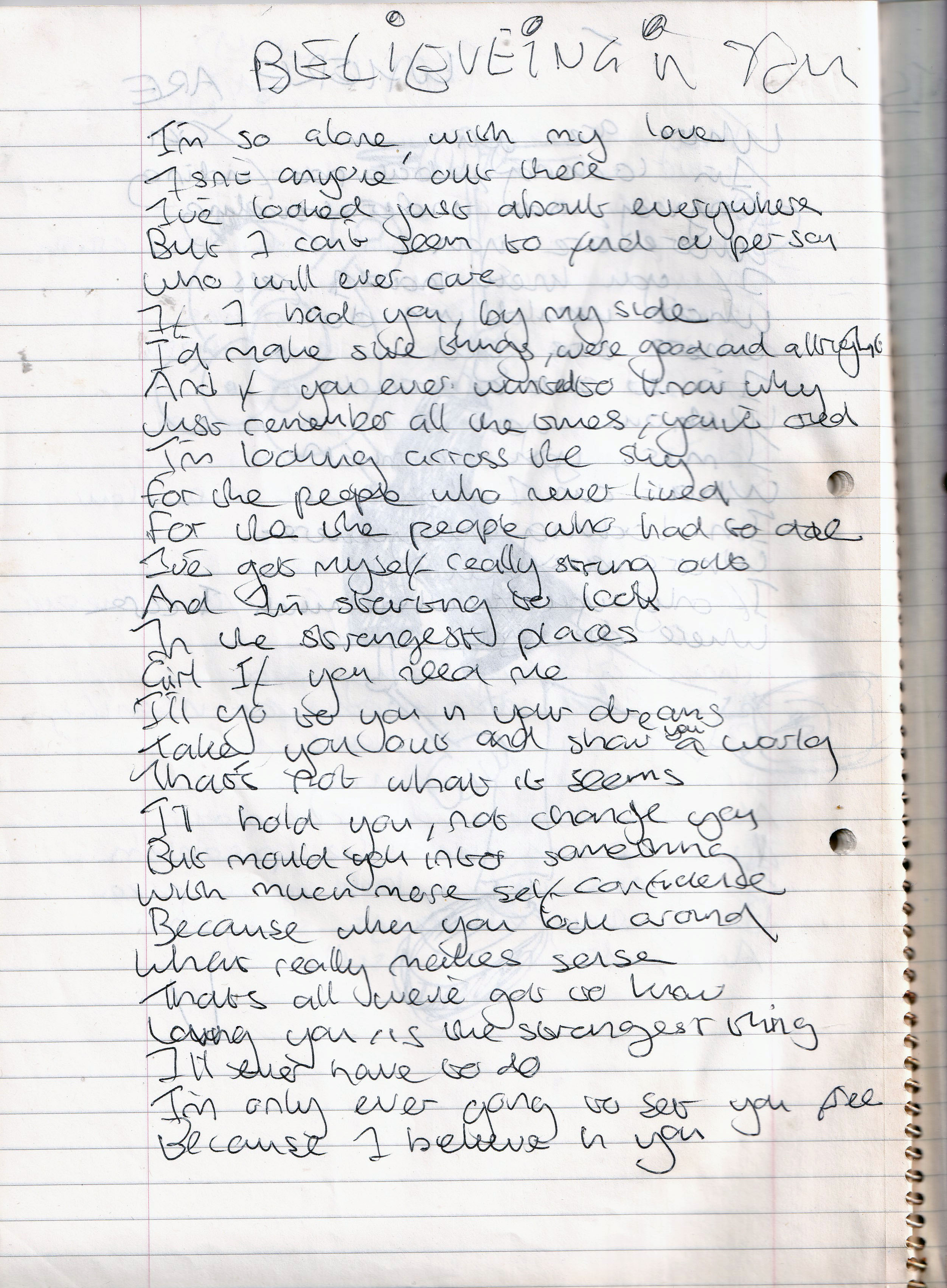 Believing in You – Written Approx. Late 1993 or January 1994 (Aged 18)