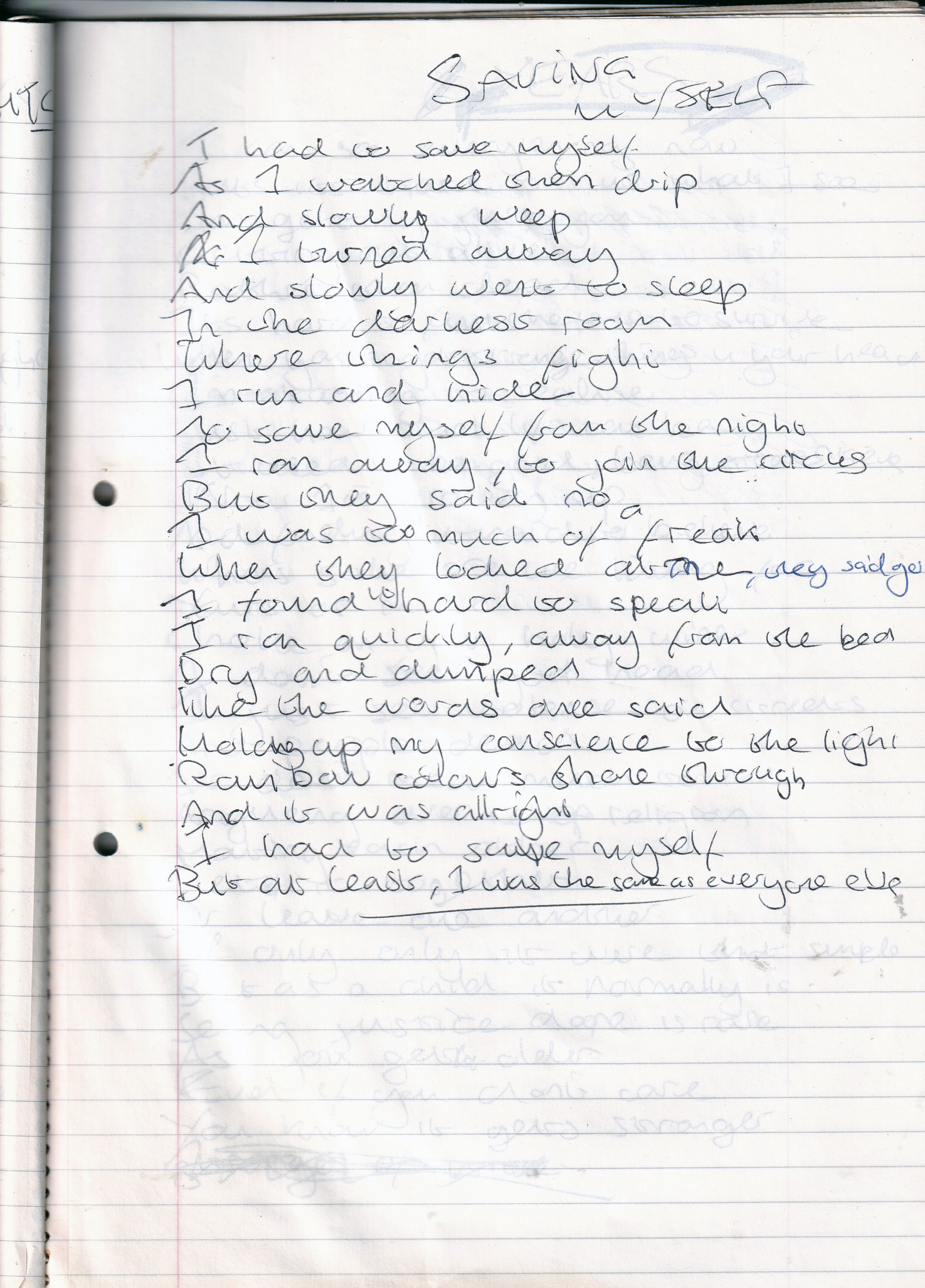 Saving Myself – Written Approx. Late 1993 or January 1994 (Aged 18)