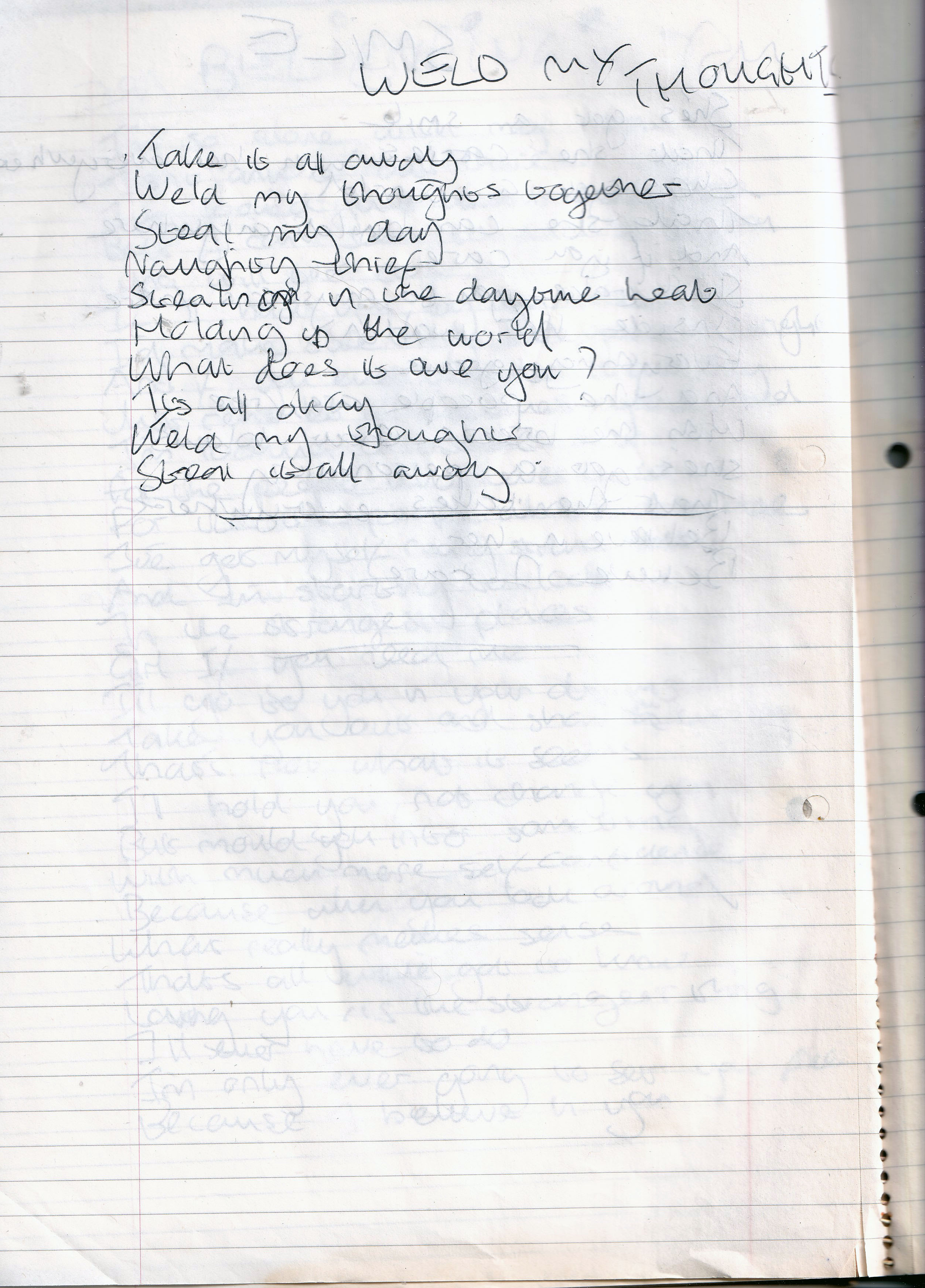Weld My Thoughts – Written Approx. Late 1993 or January 1994 (Aged 18)