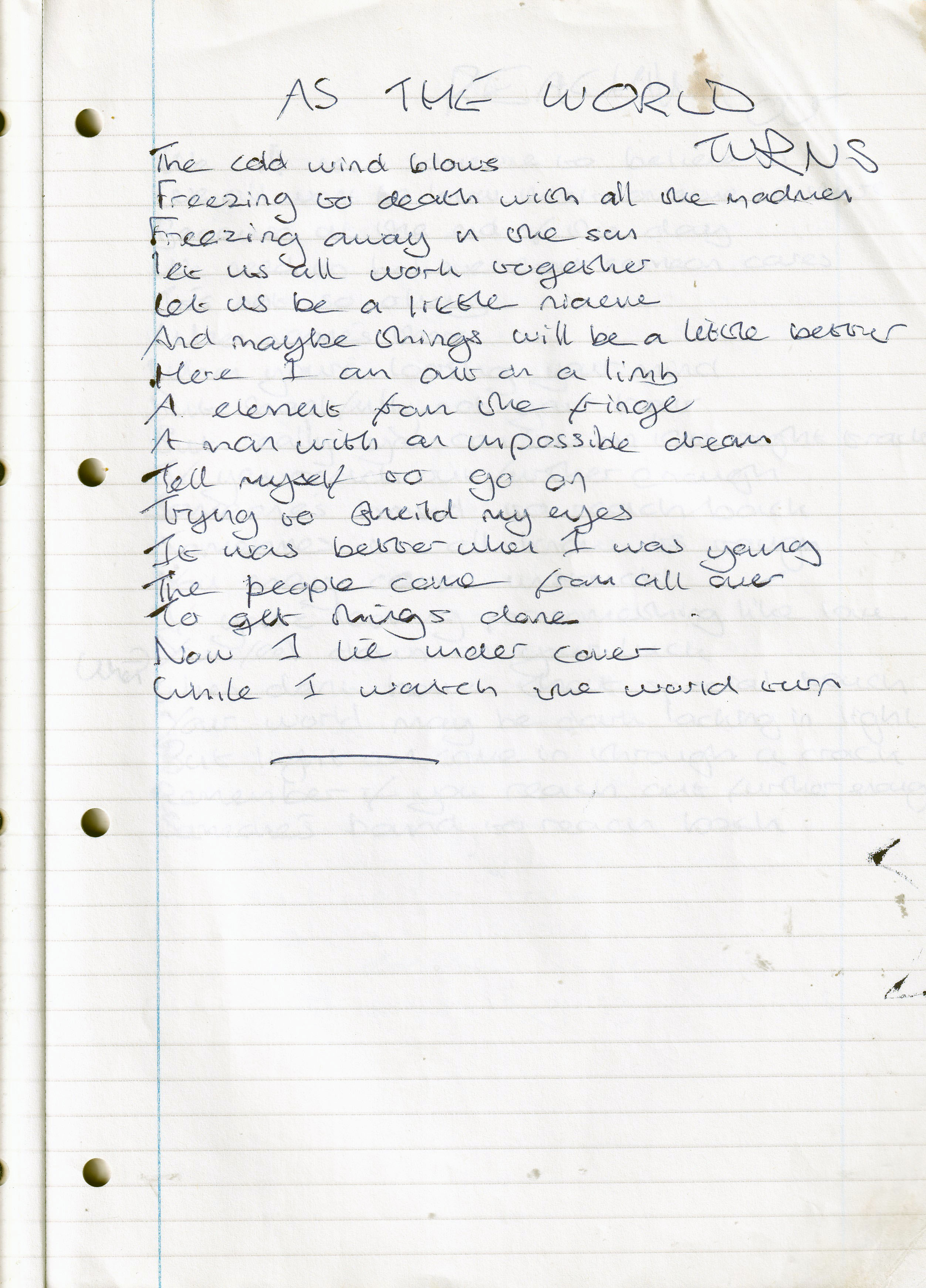 As The World Turns – Written February 1995 (Aged 19)