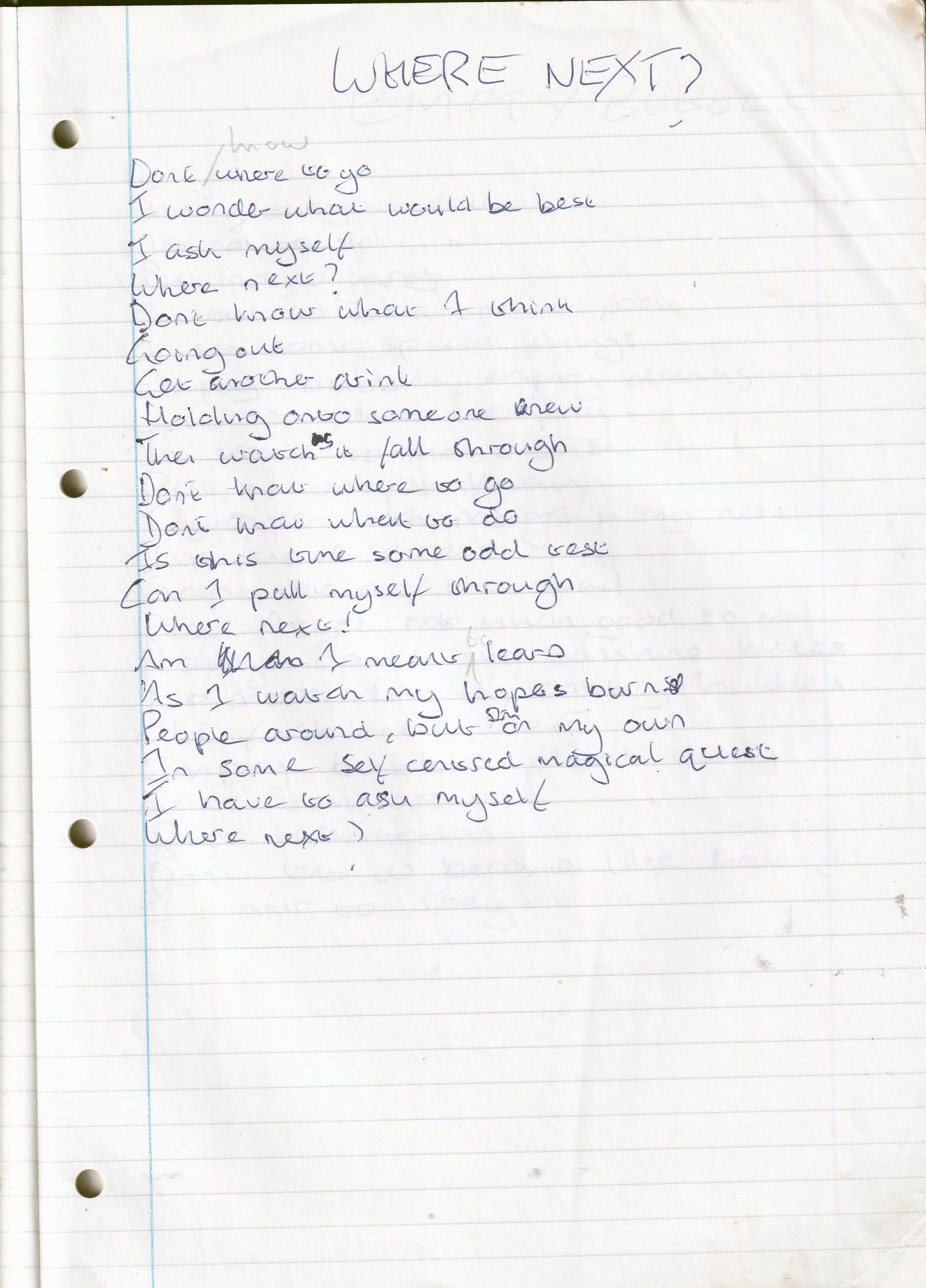 Where Next? – Written February 1995 (Aged 19)