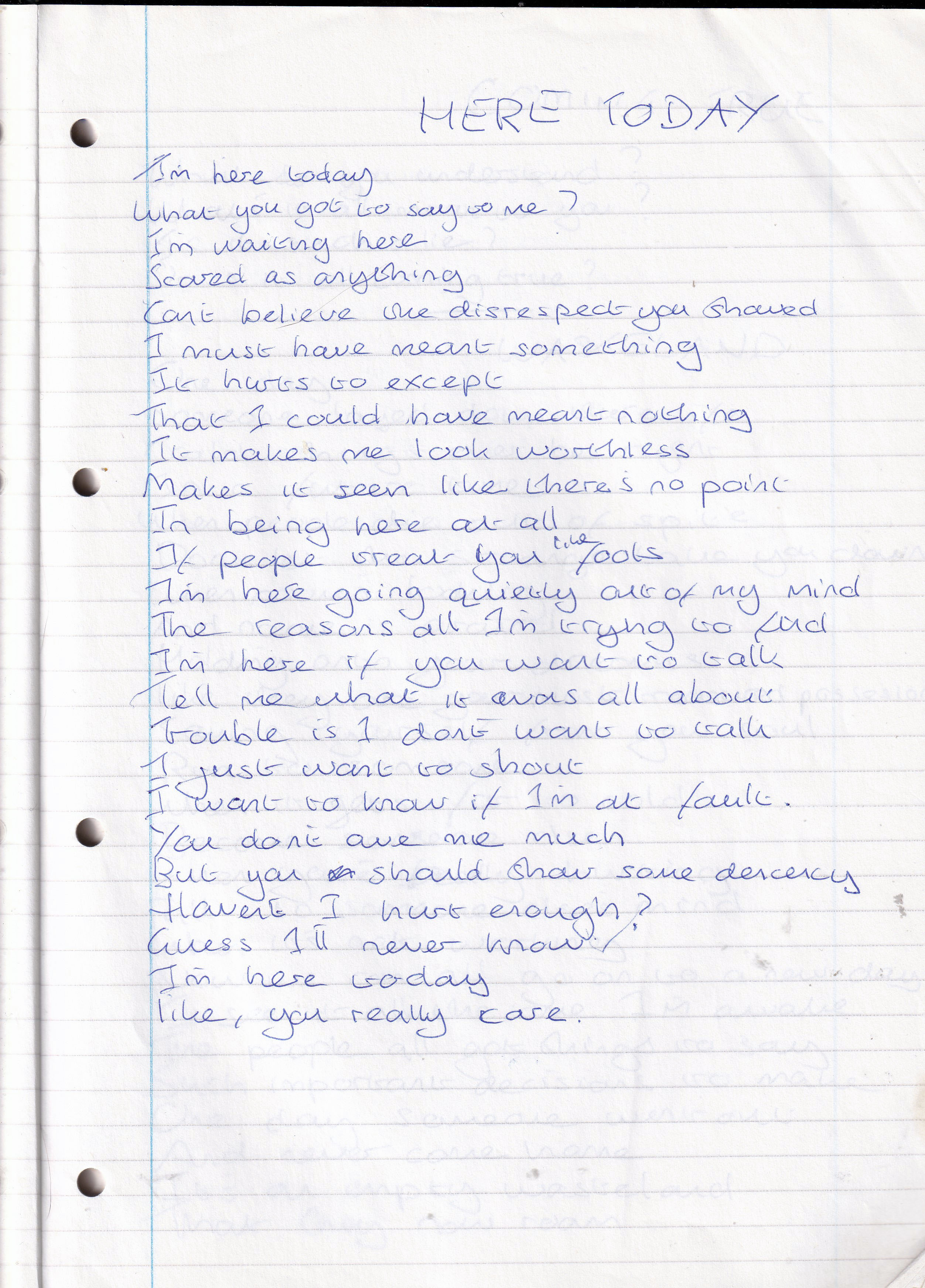 Here Today – Written February 1995 (Aged 19)