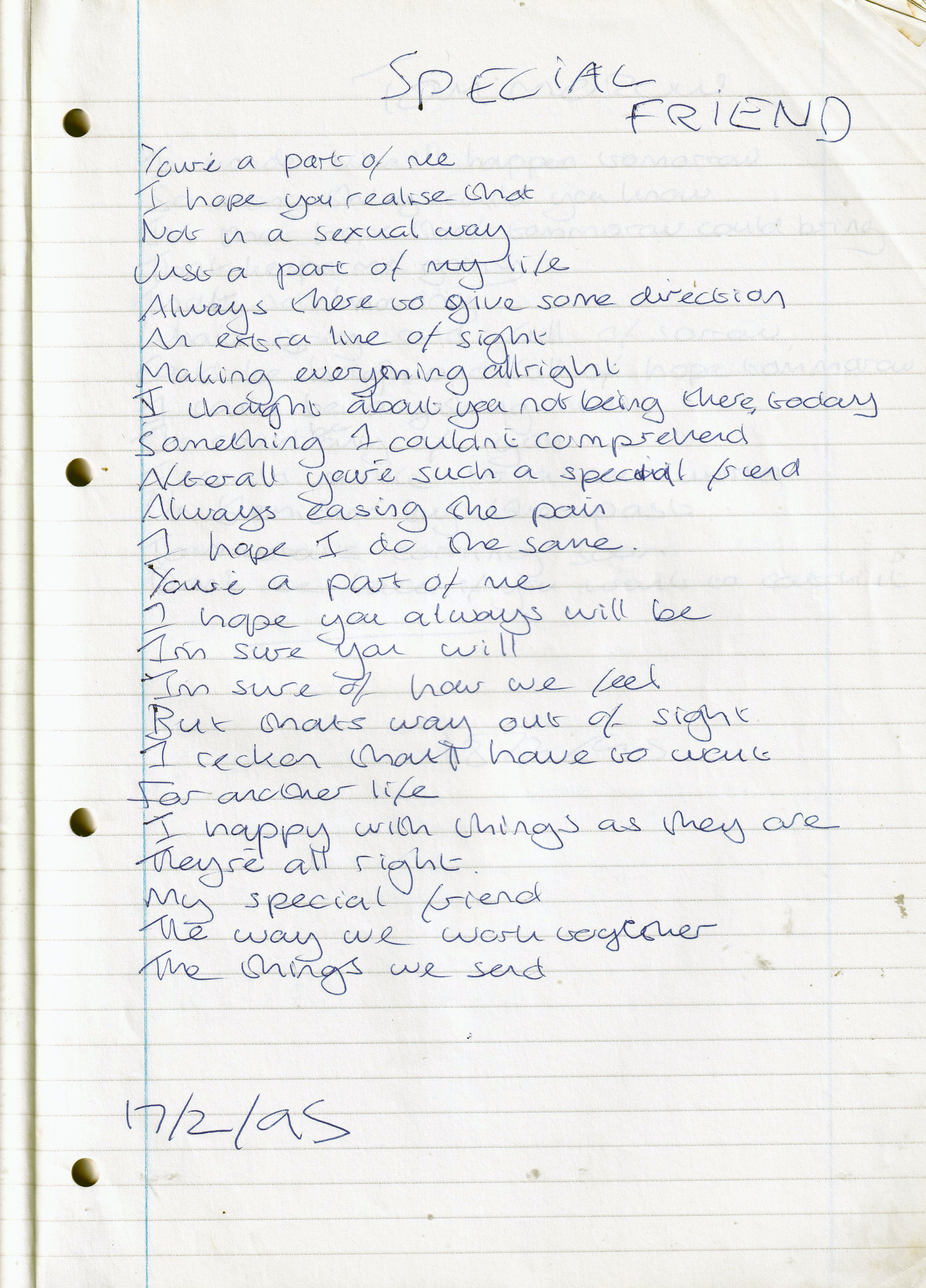 Special Friend – Written Friday 17th February 1995 (Aged 19)