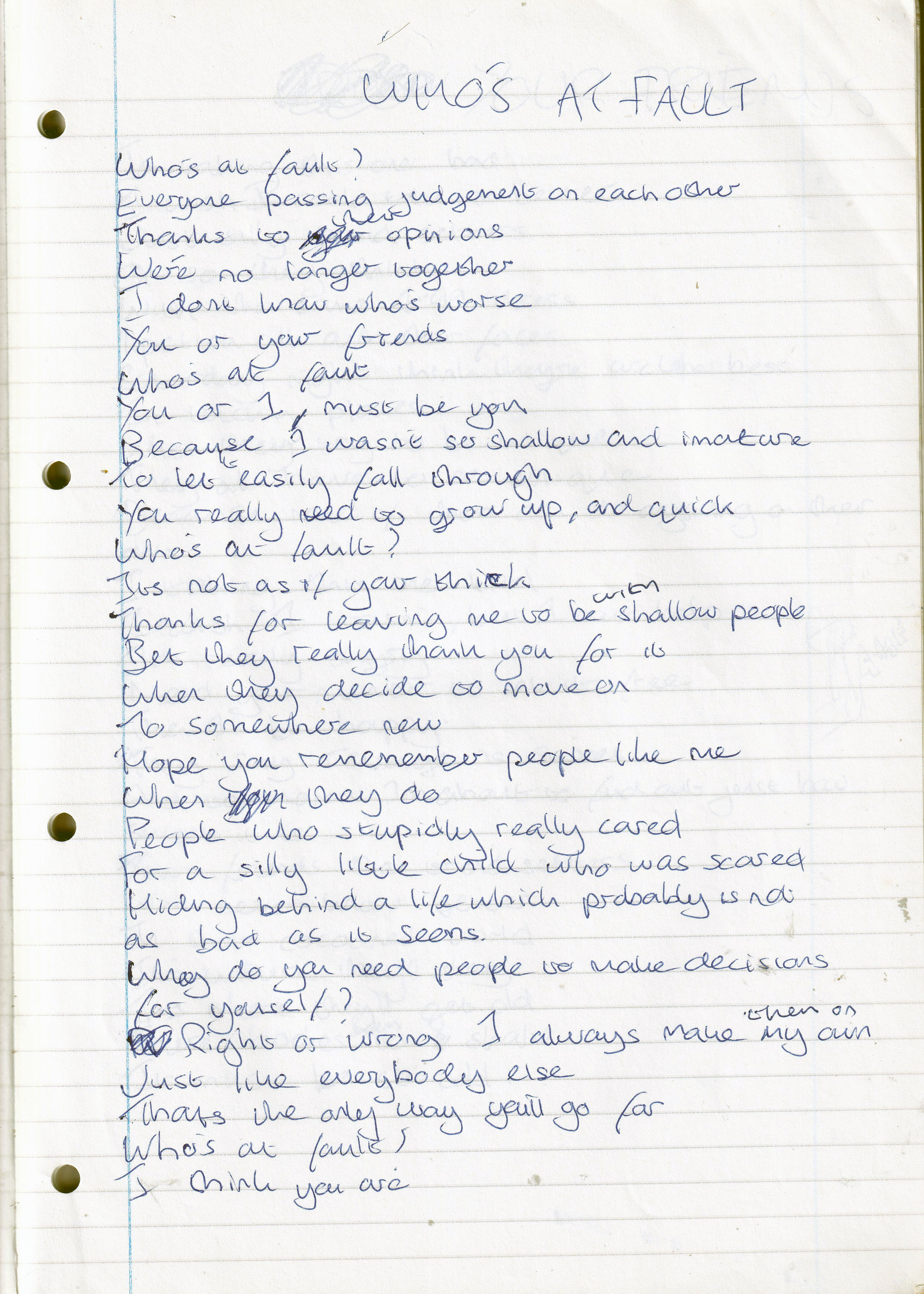 Who is At Fault – Written Sunday 19th February 1995 (Aged 19)