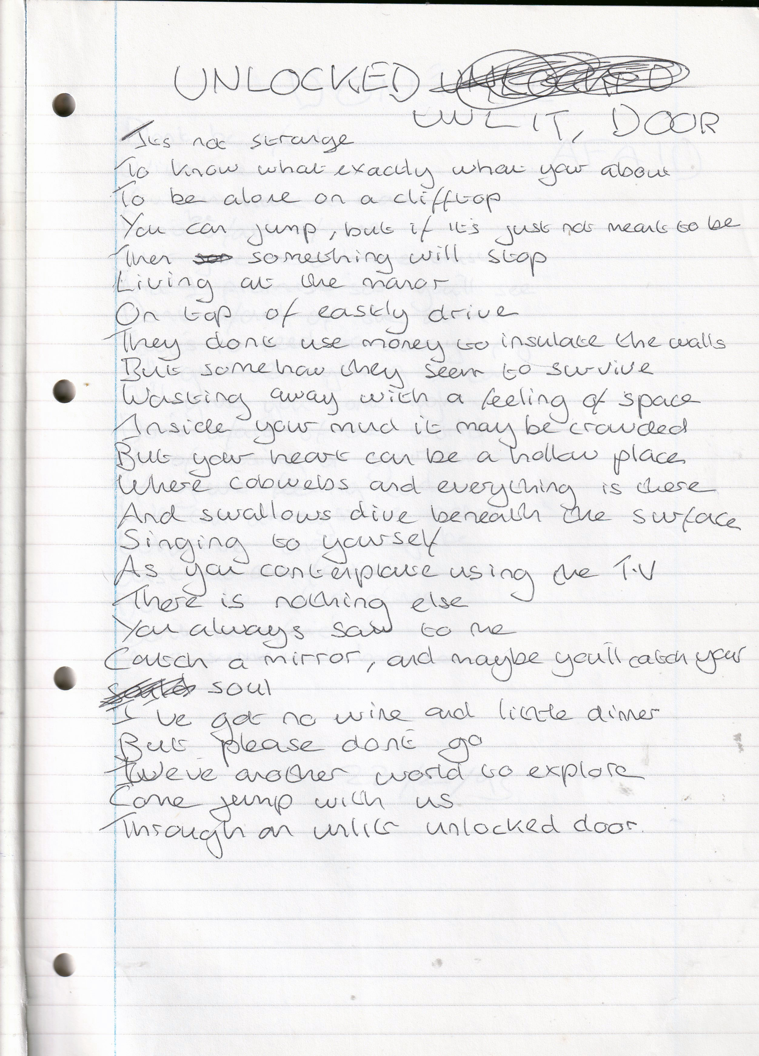 Unlocked Unlit Door – Written Wednesday 22nd February 1995 (Aged 19)