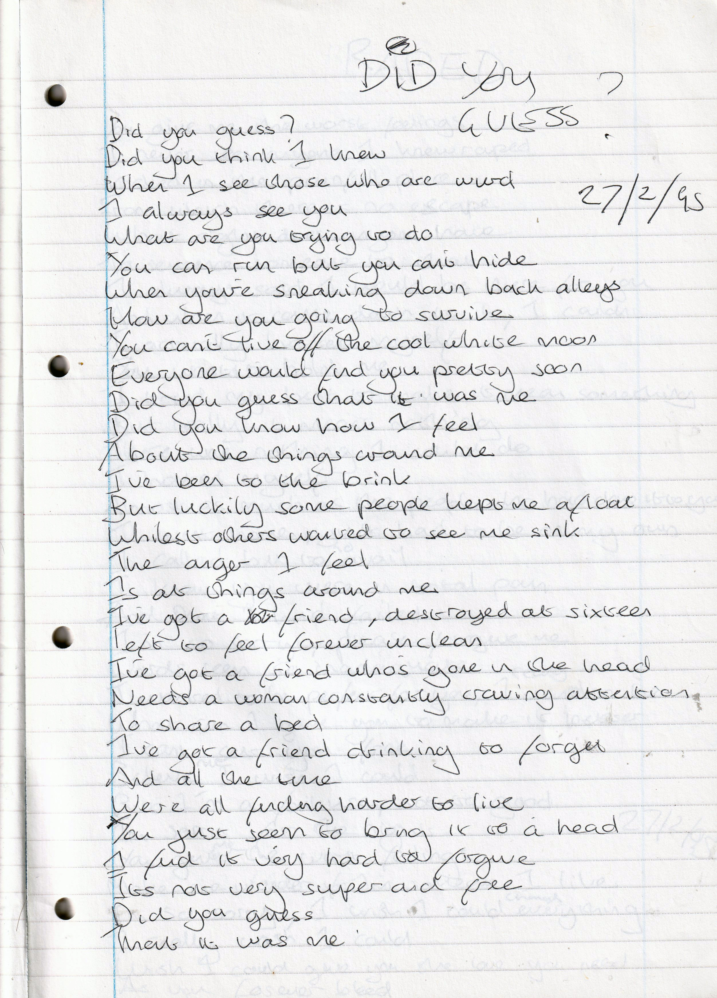 Did You Guess? – Written Monday 27th February 1995 (Aged 20)