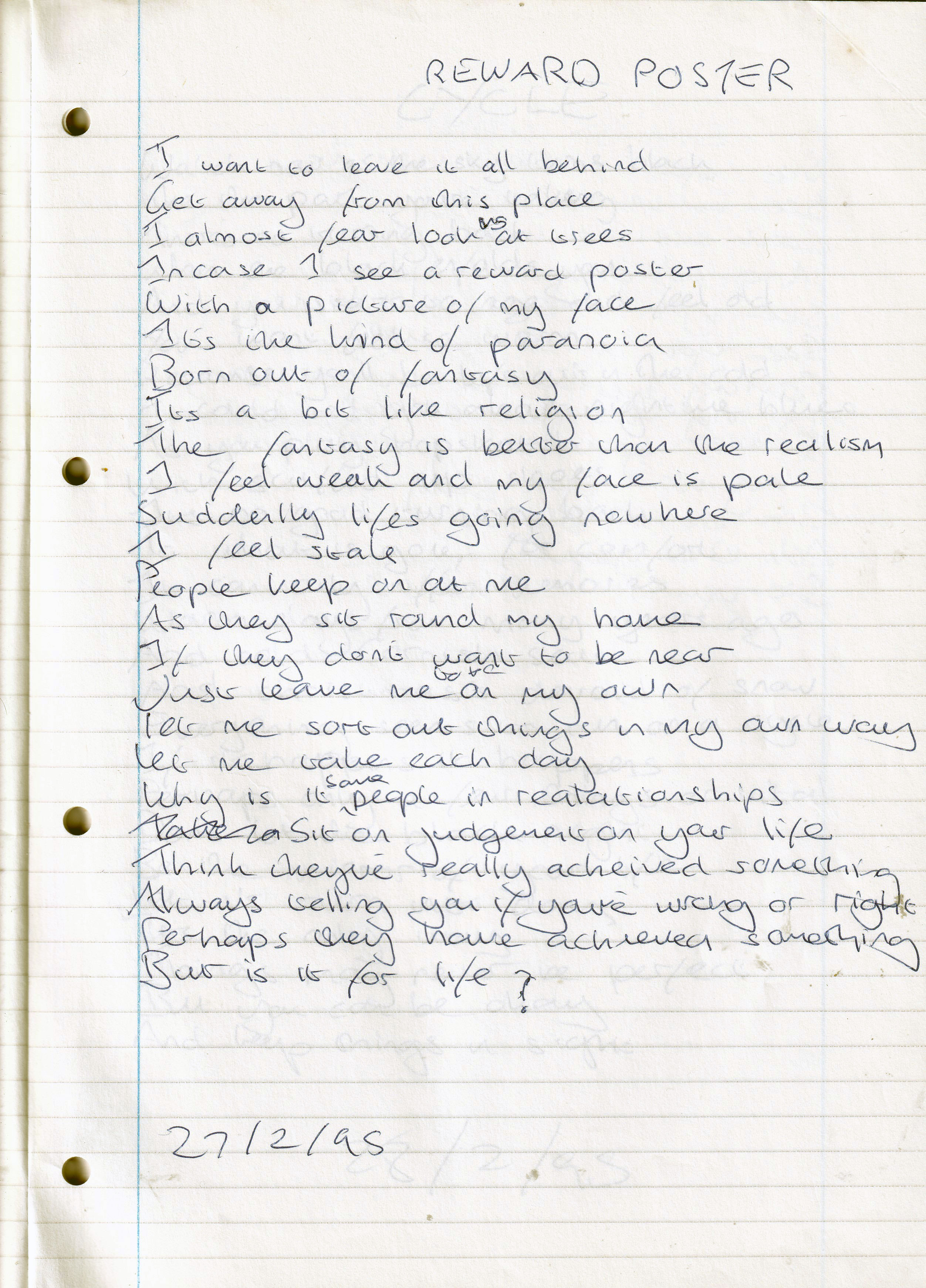 Reward Poster – Written Monday 27th February 1995 (Aged 20)