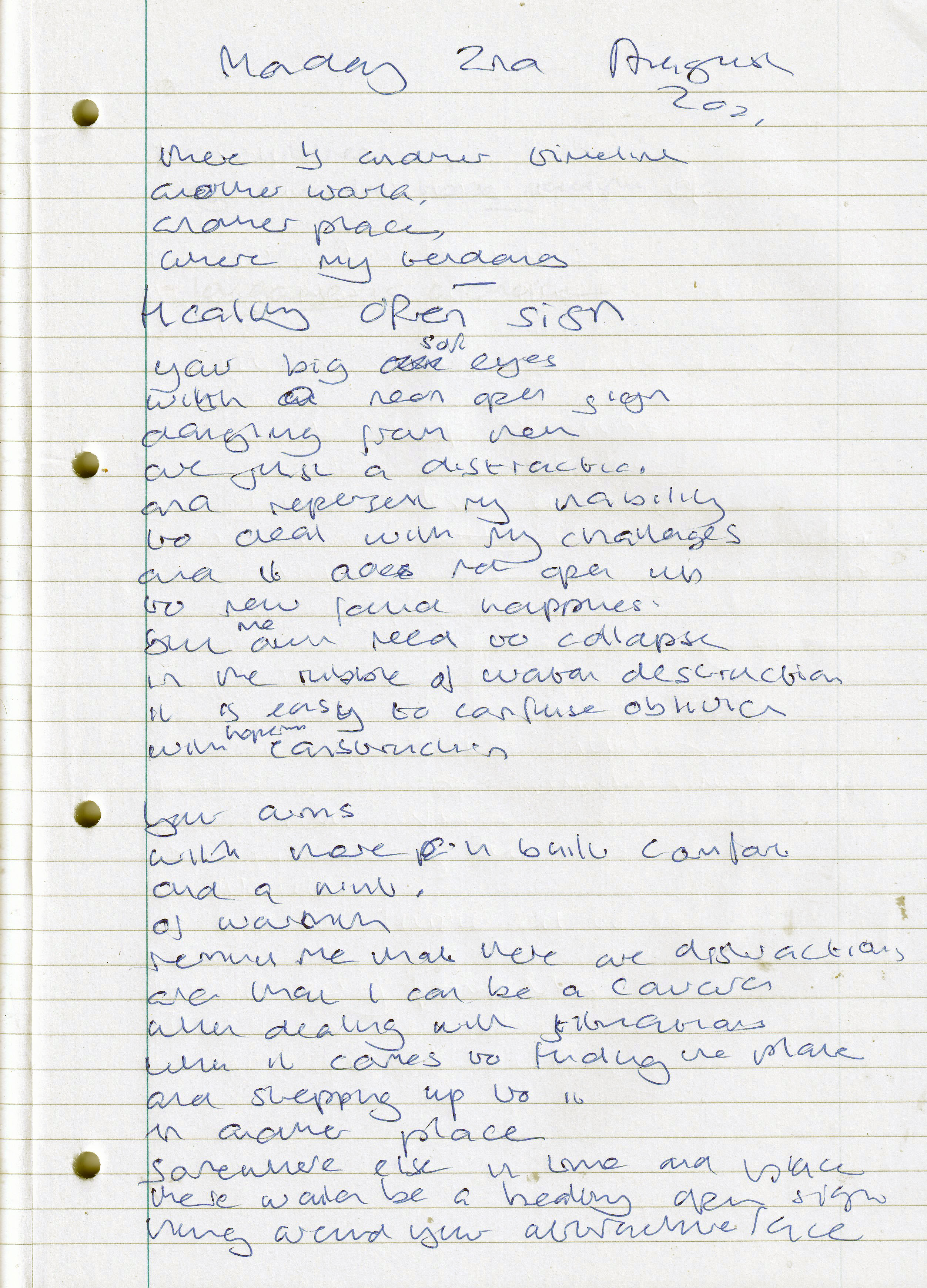 Healthy Open Sign – Written Monday 2nd August 2021 (Aged 46)