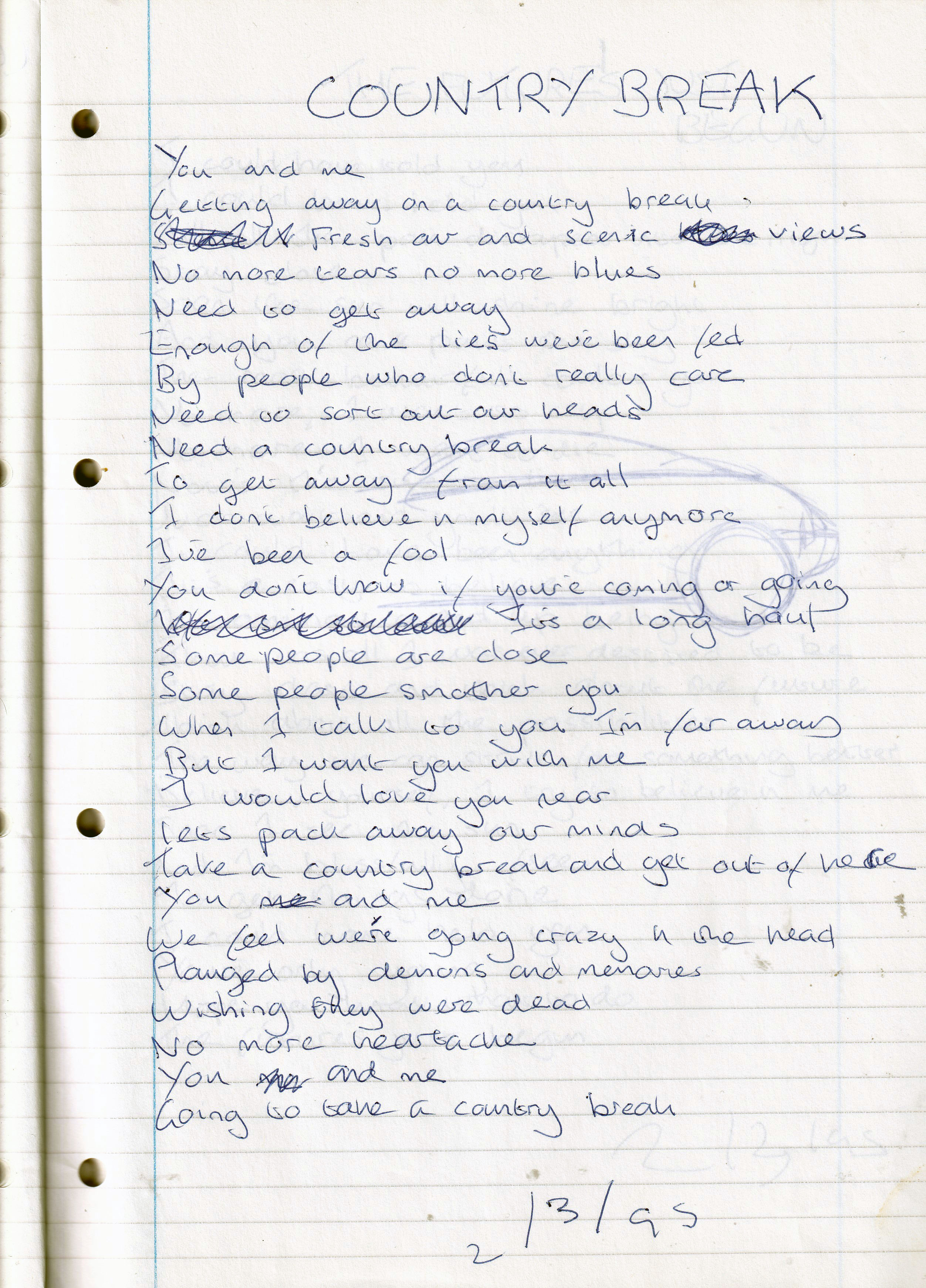Country Break – Written Thursday 2nd March 1995 (Aged 20)