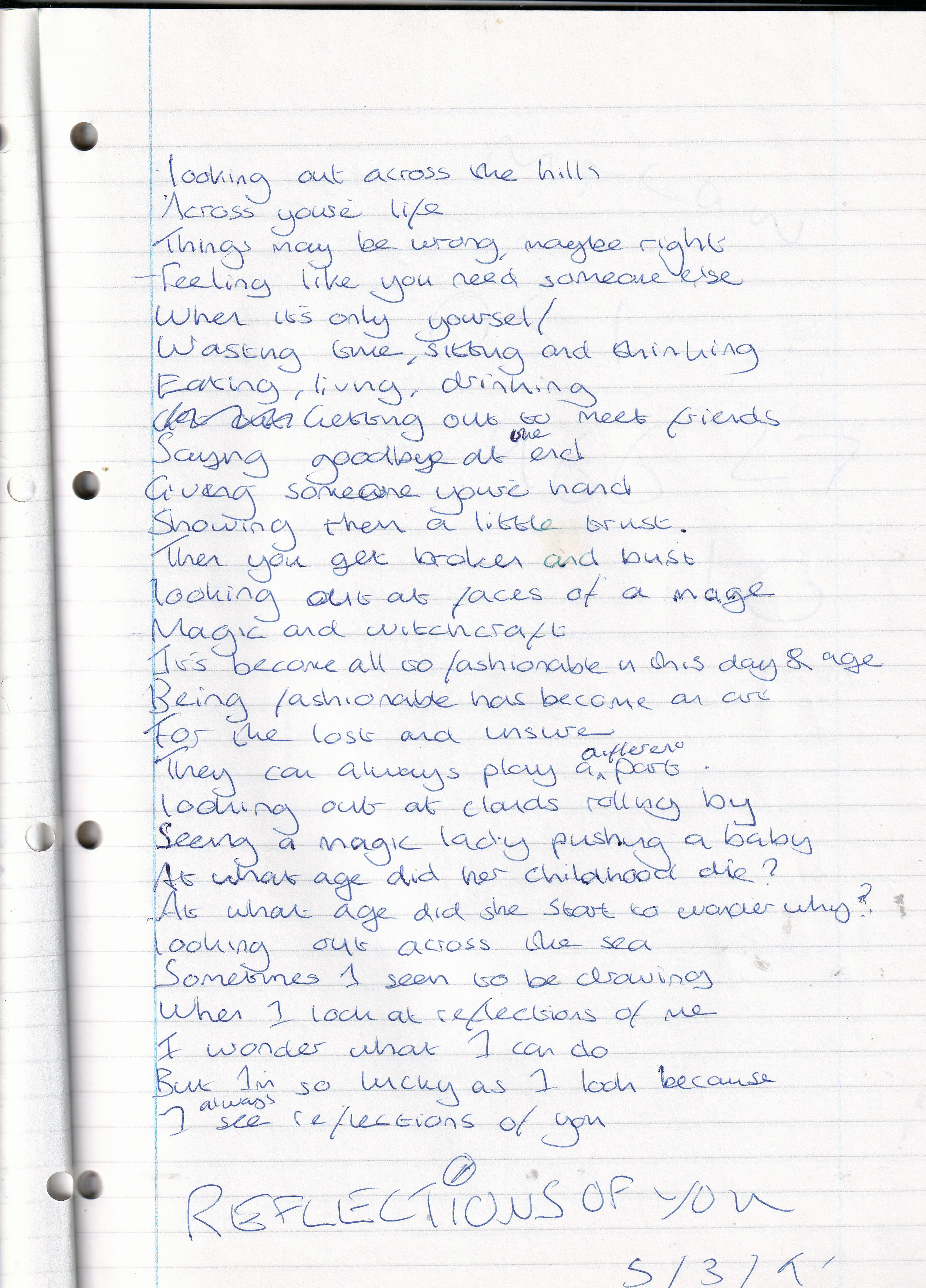 Reflections of You – Written Sunday 5th March 1995 (Aged 20)