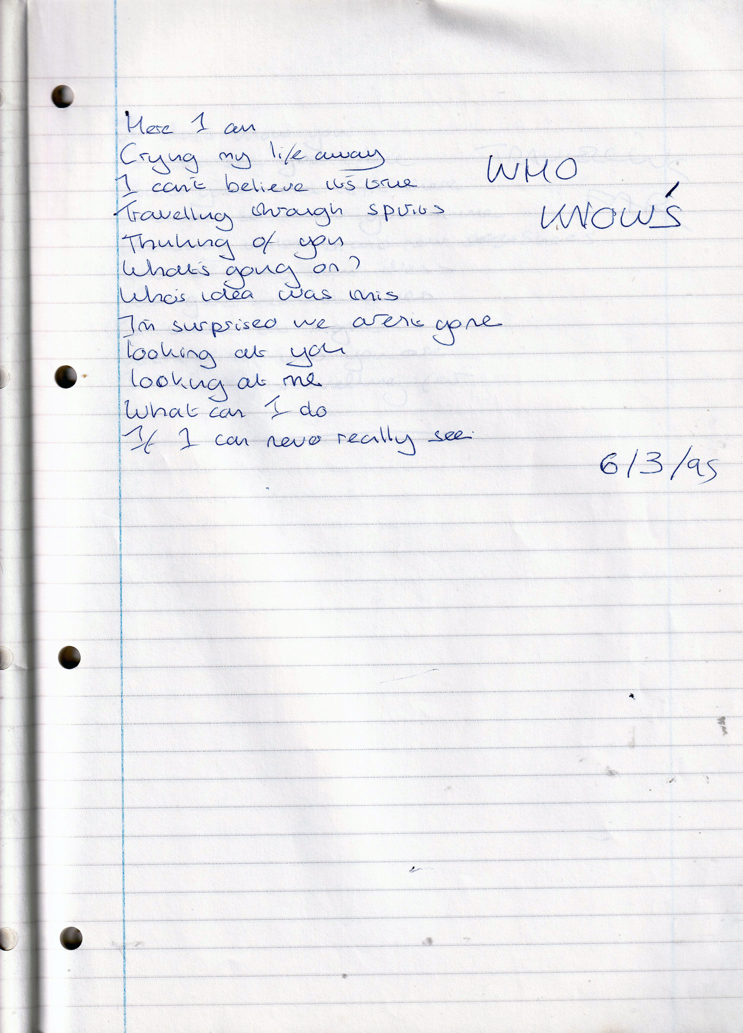 Who Knows? – Written March 1995 (Aged 20)