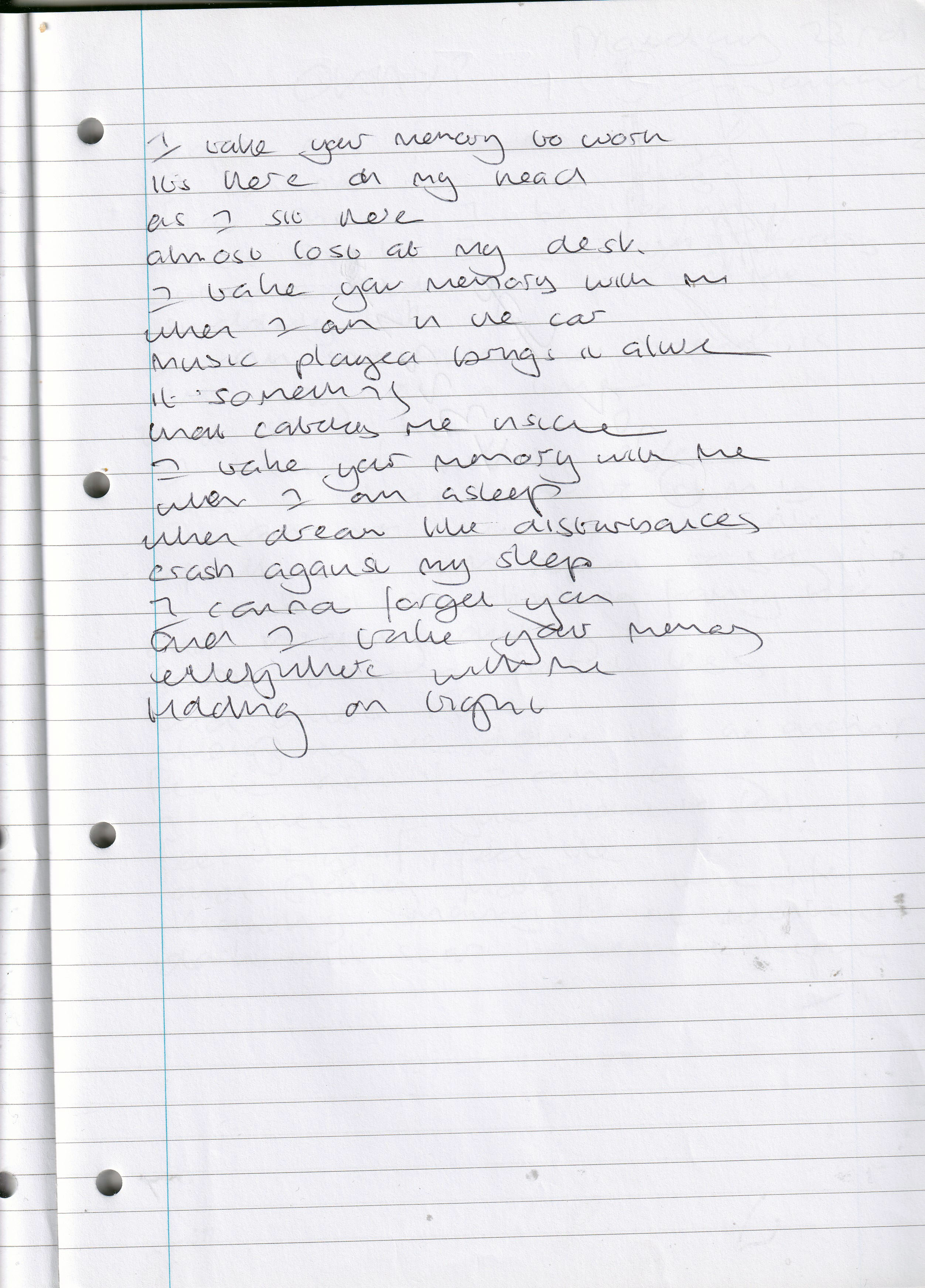 I Take Your Memory to Work – Written January 2012 (Aged 36)