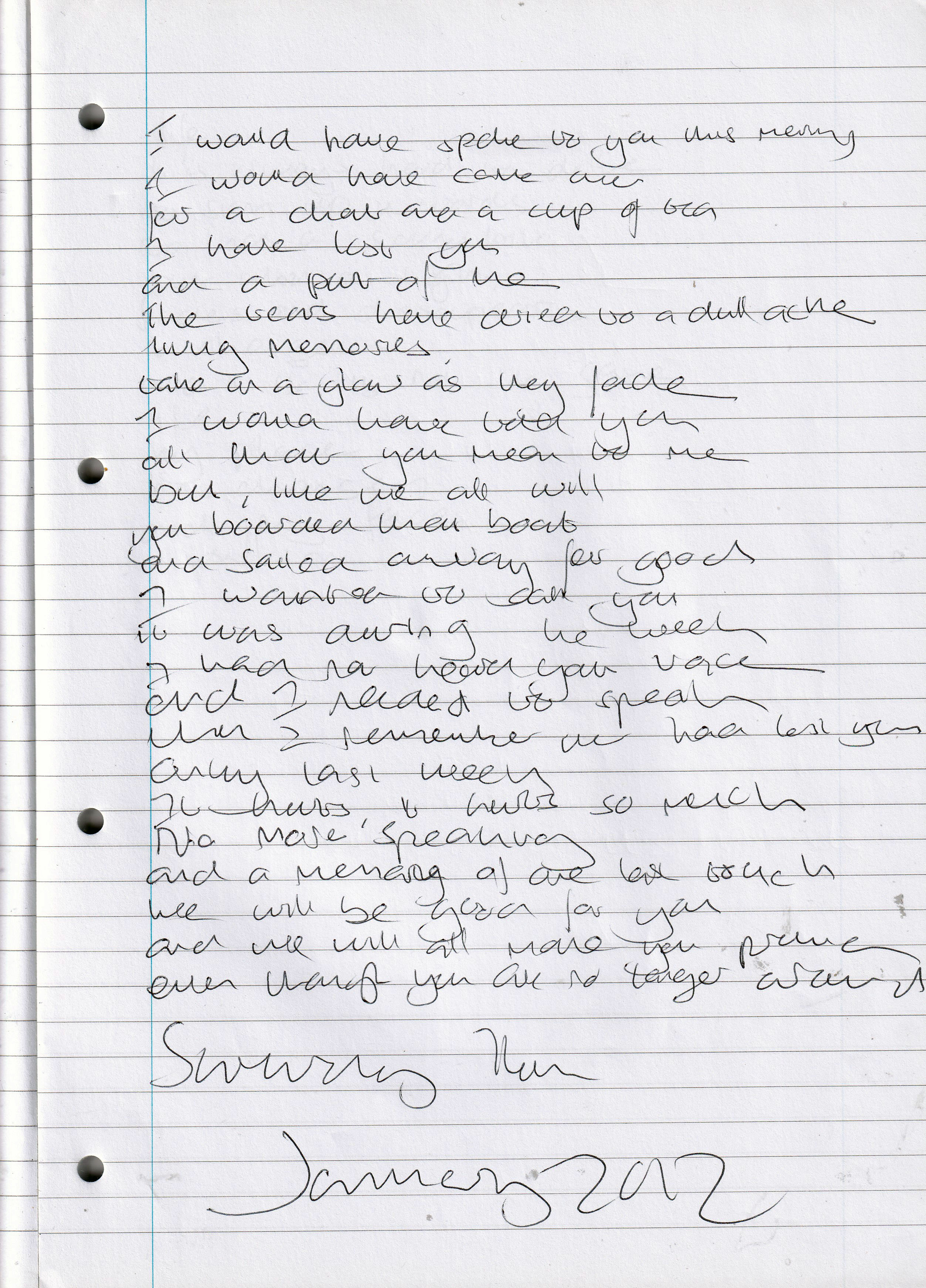 I Would Have Spoken To You This Morning – Written Saturday 14th January 2012 (Aged 36)