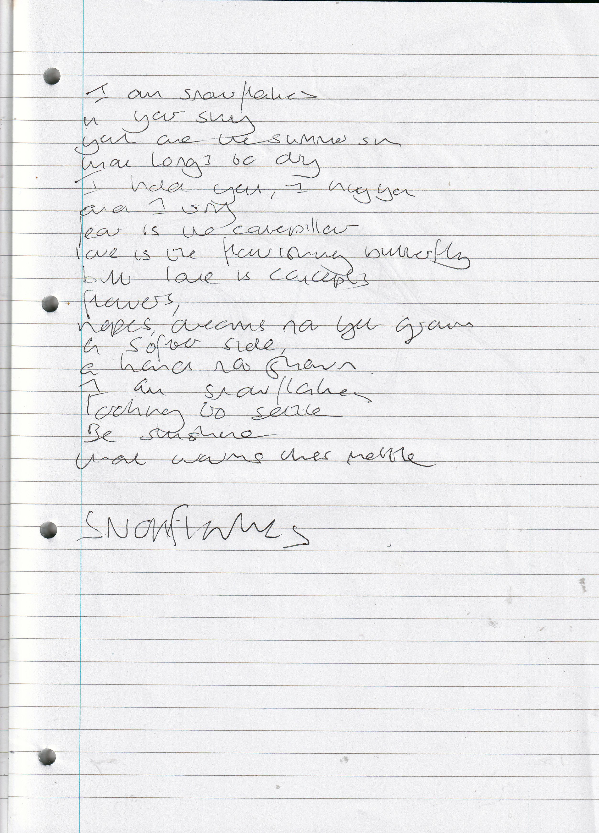 Snowflakes in Your Sky – Written June 2011 (Aged 36)