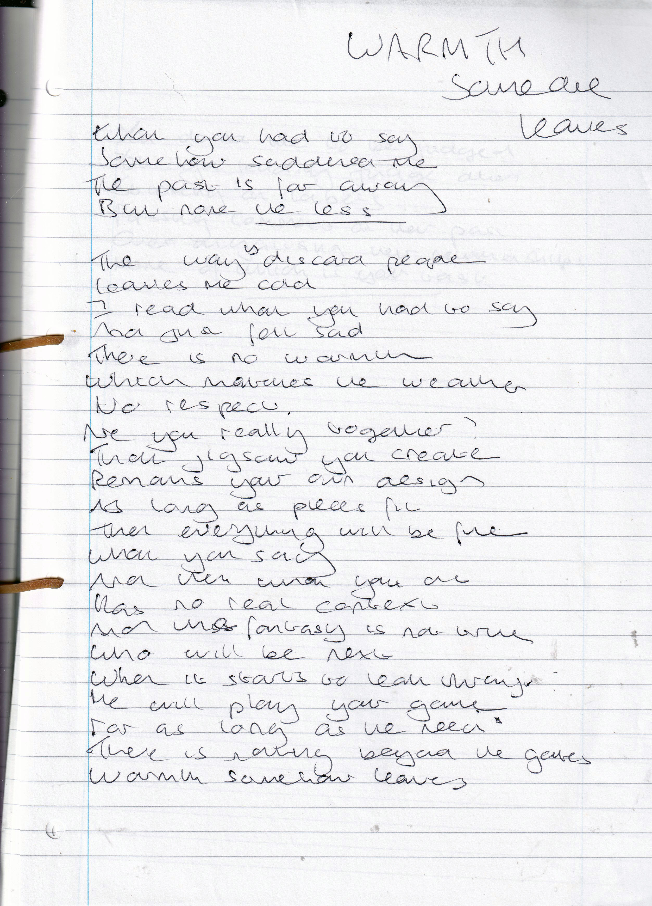 Warmth Somehow Leaves – Written May 2009 (Aged 34)