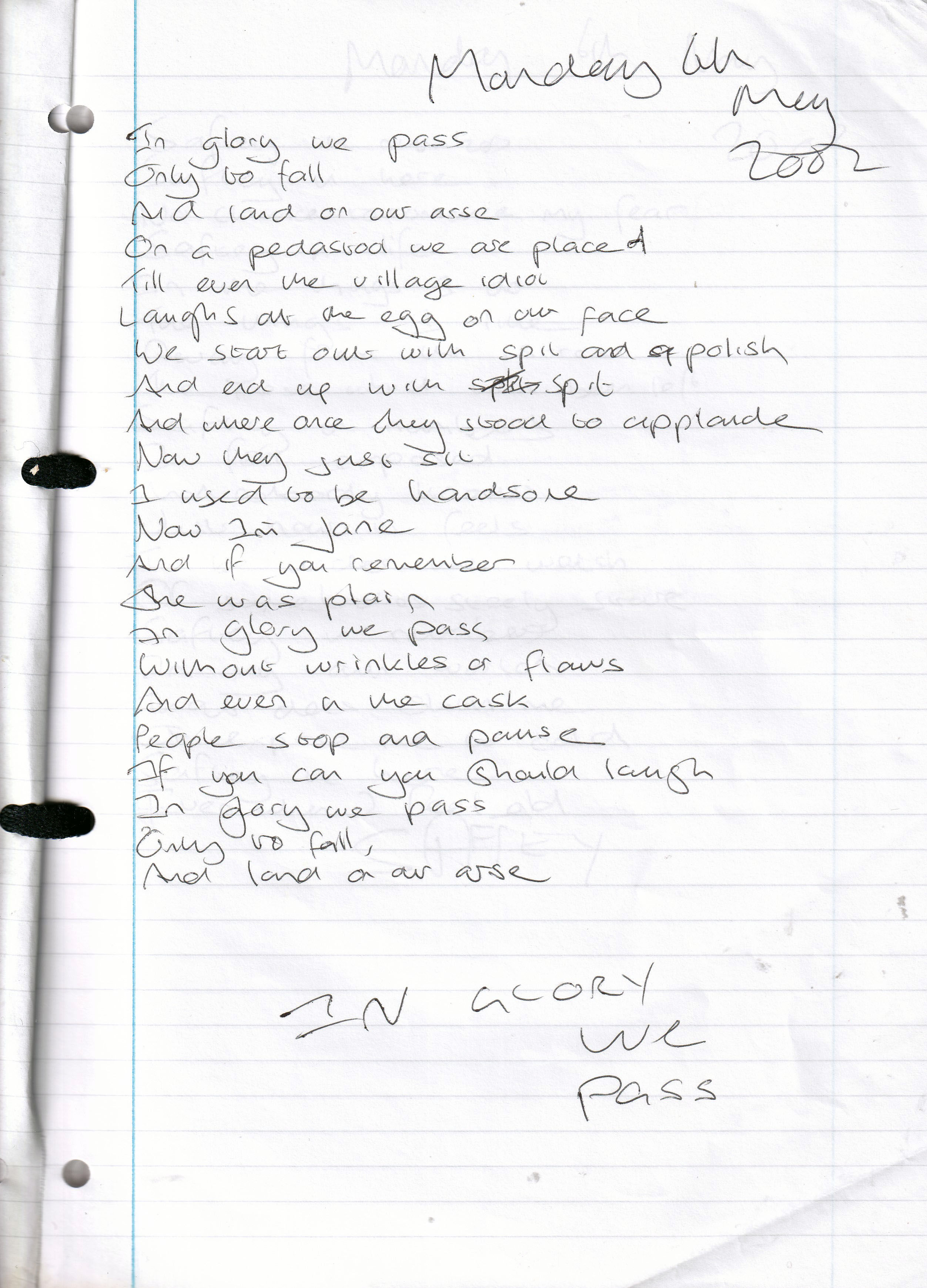 In Glory We Pass – Written Monday 6th May 2002 (Aged 27)