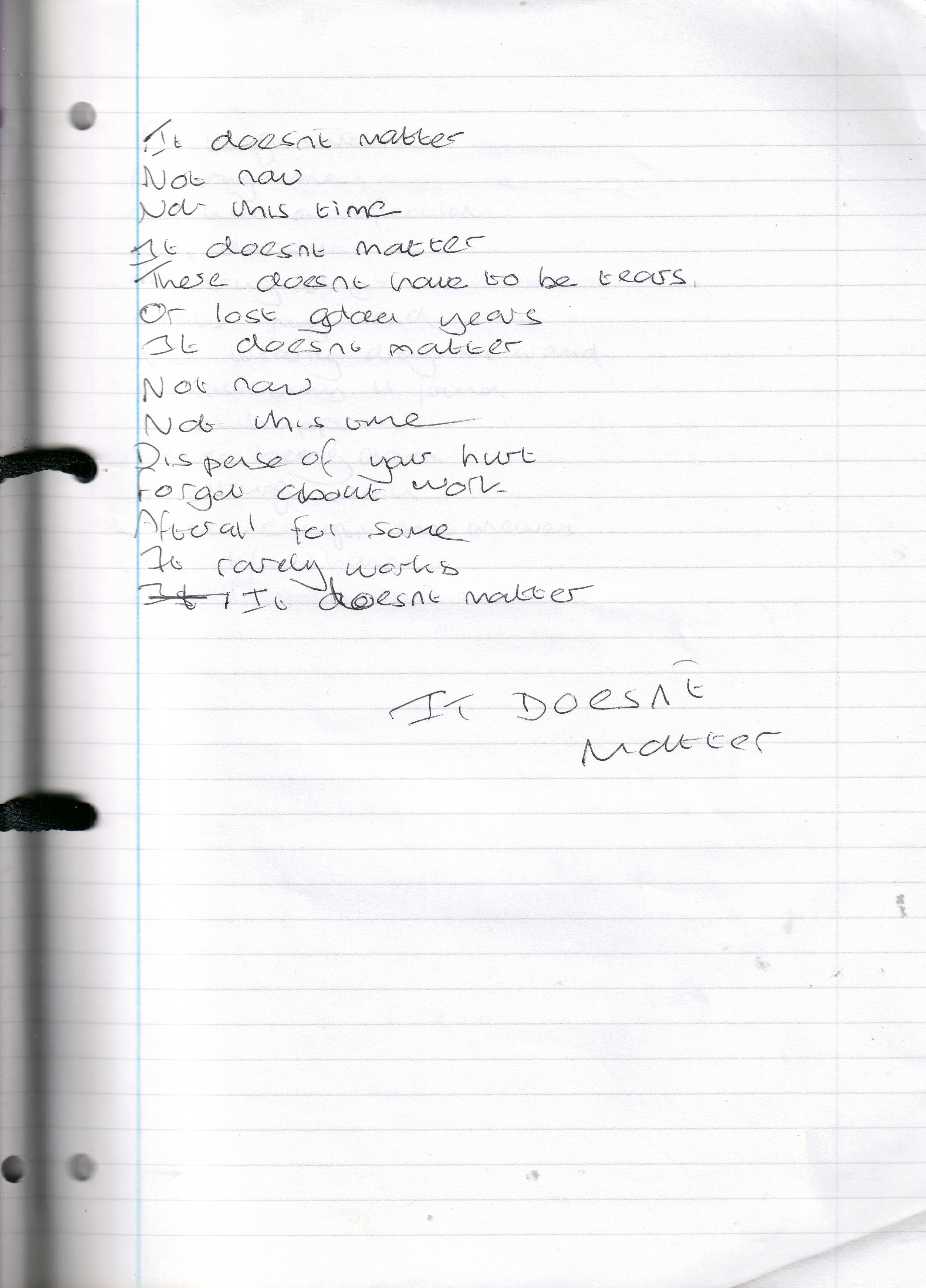 It Does Not Matter – Written May 2002 (Aged 27)