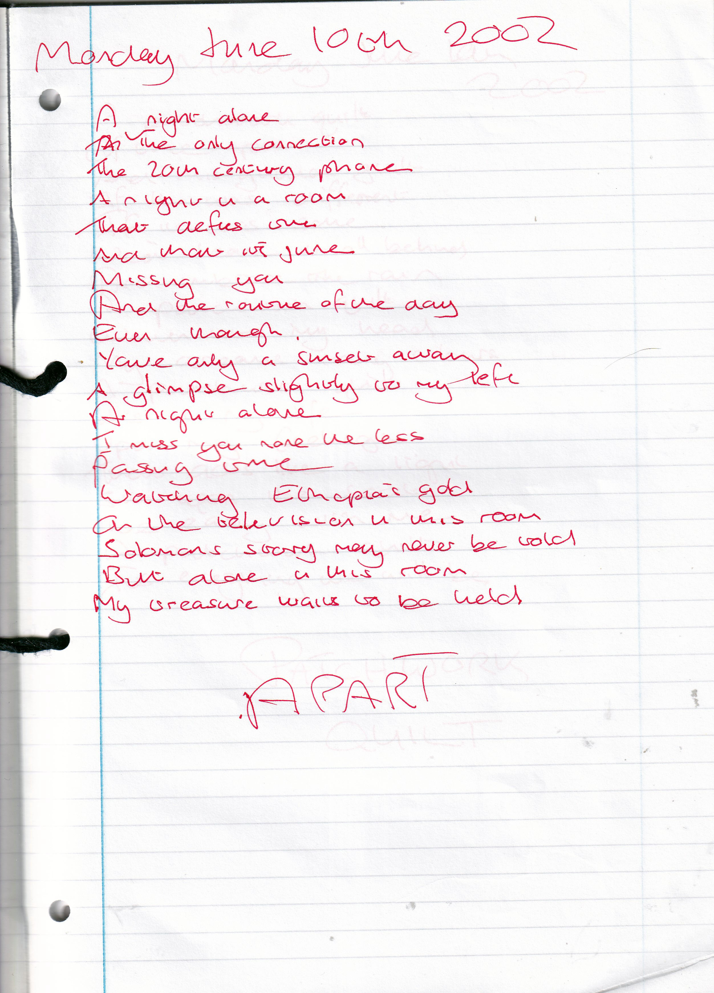Apart – Written Monday 10th June 2002 (Aged 27)