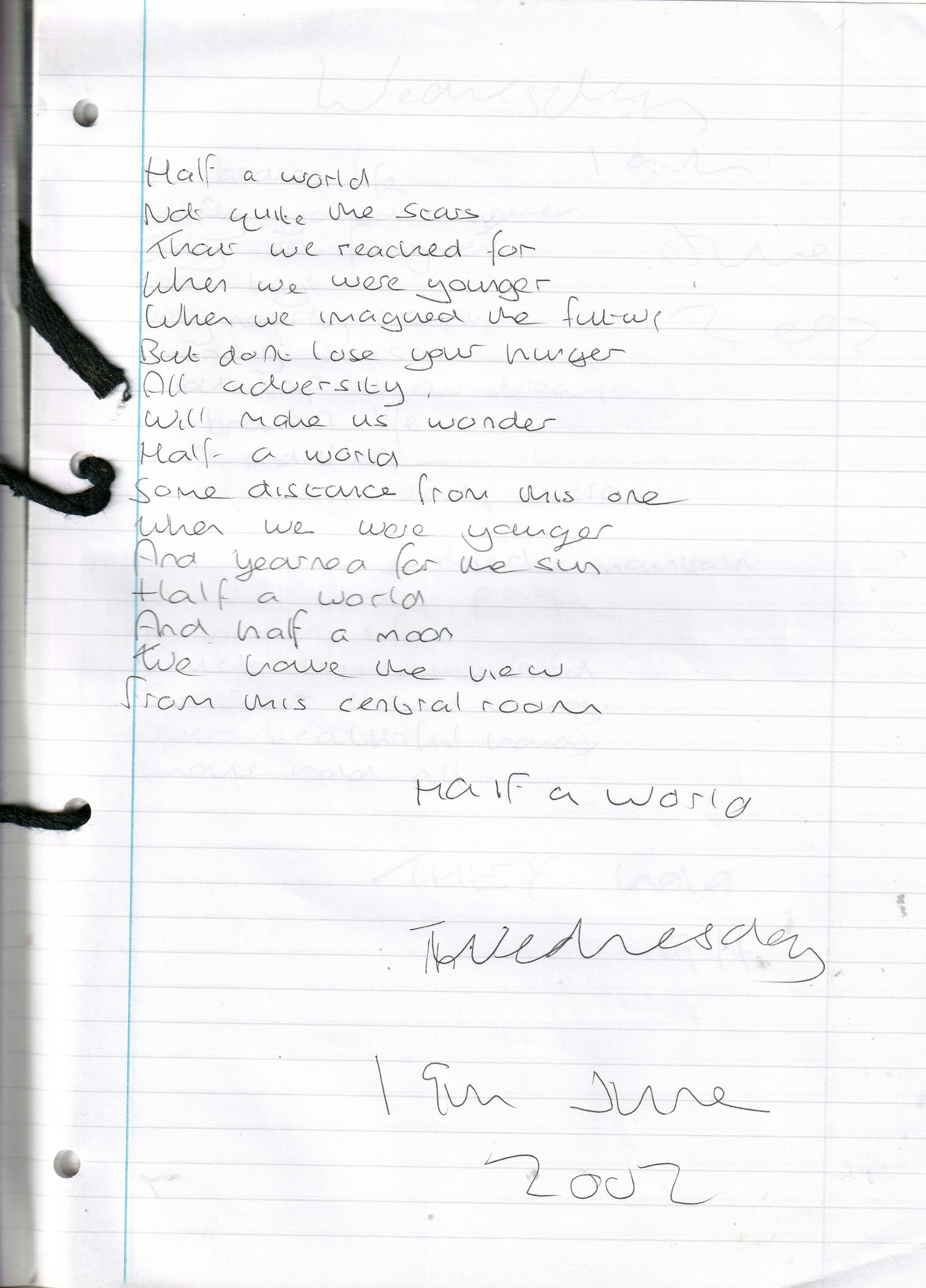 Half a World – Written Wednesday 19th June 2002 (Aged 27)