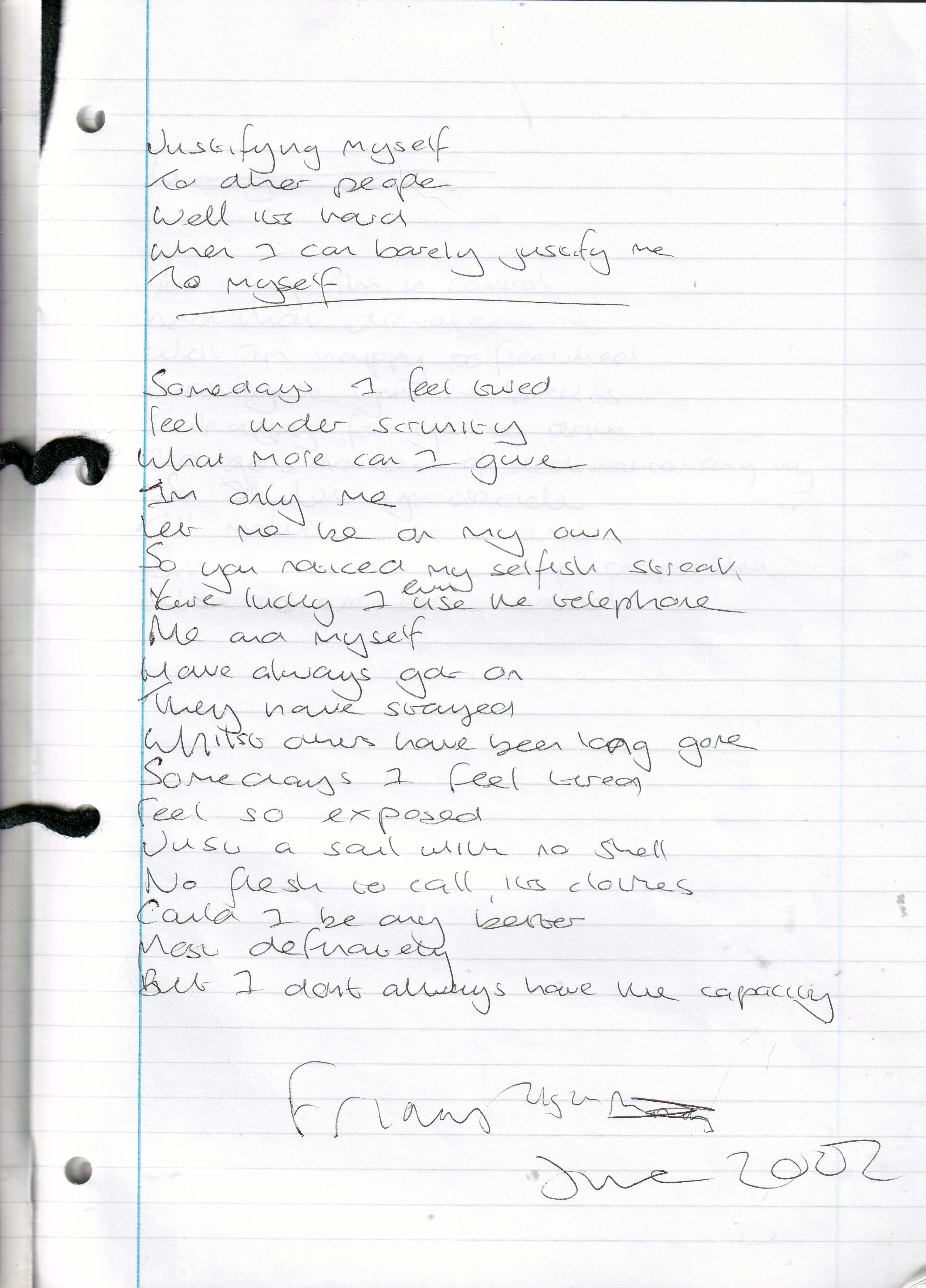 What More Can I Give – Written Friday 21st June 2002 (Aged 27)