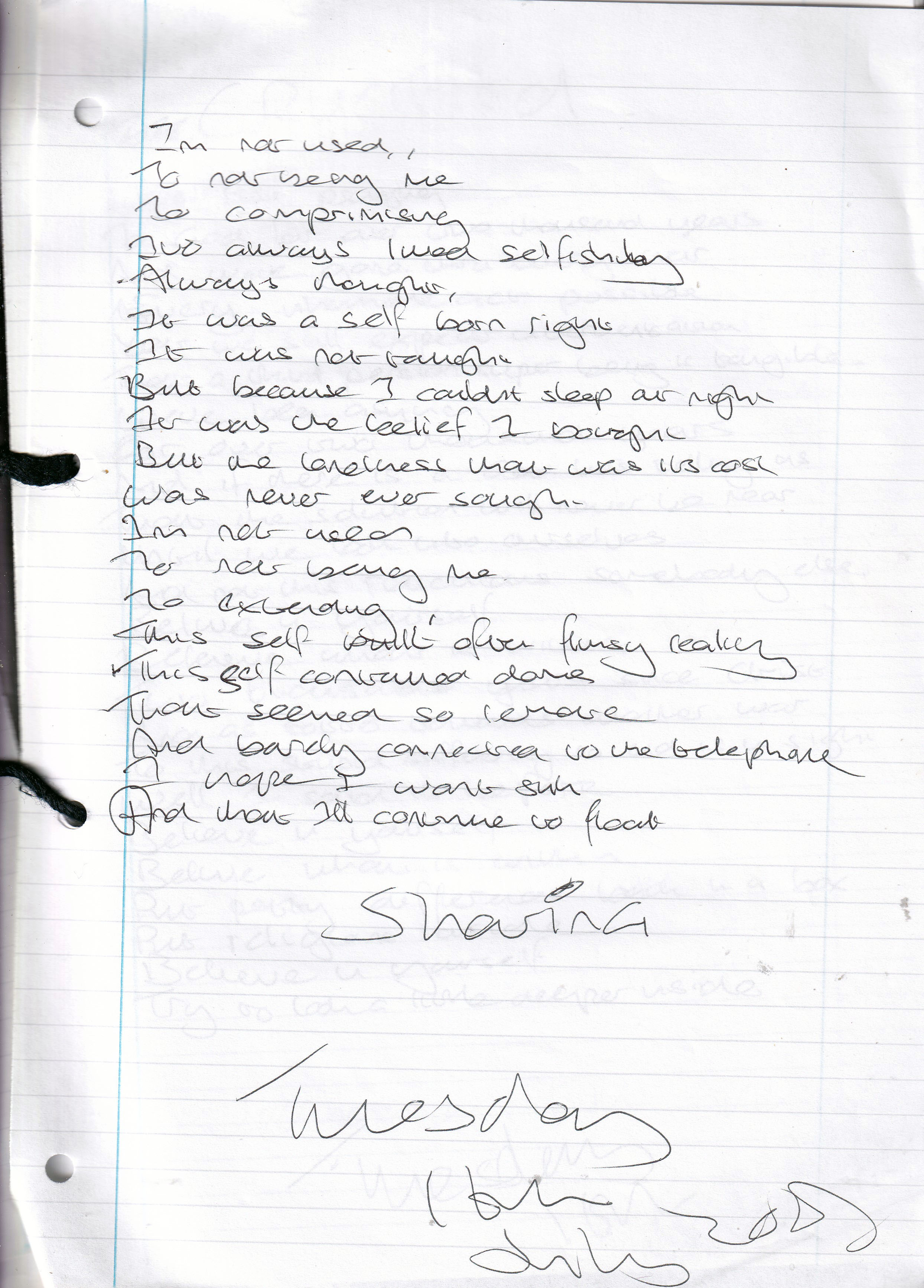 Sharing – Written Tuesday 16th July 2002 (Aged 27)
